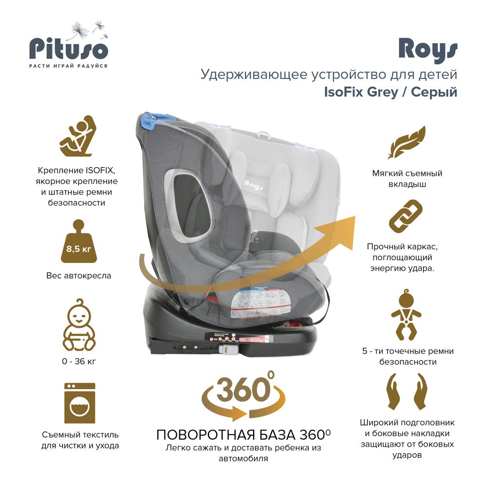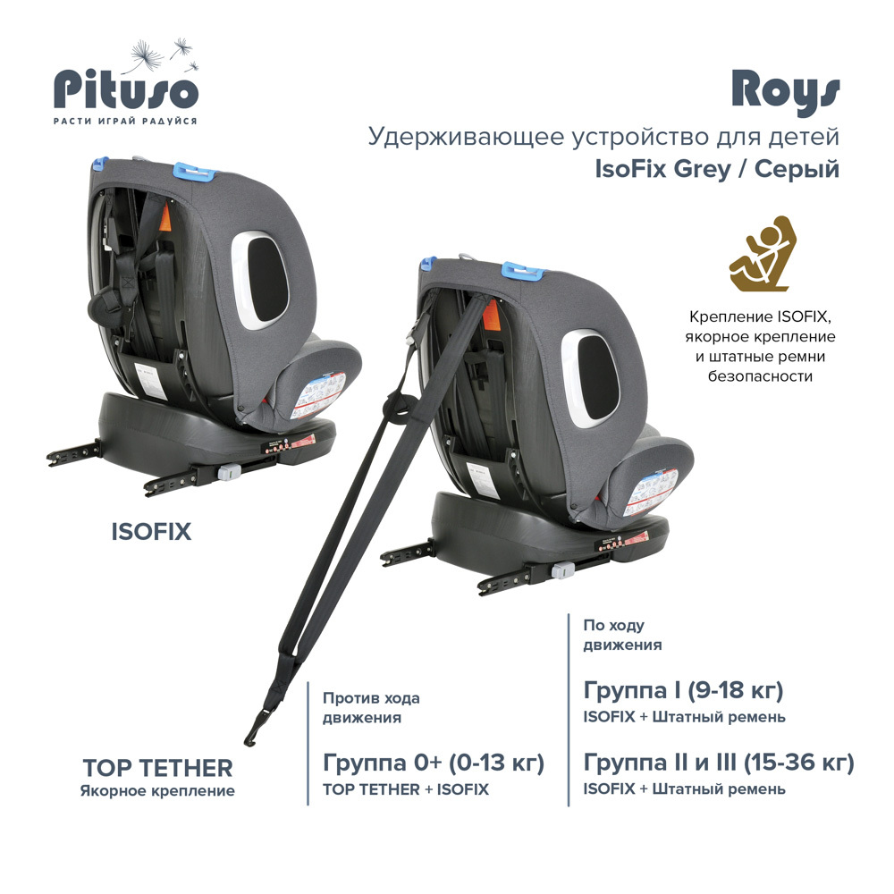 Автокресло группы 0-1-2-3 Pituso Roys Grey/Серый