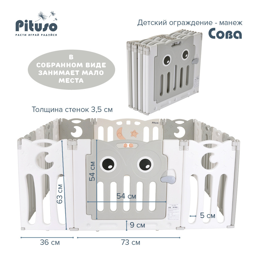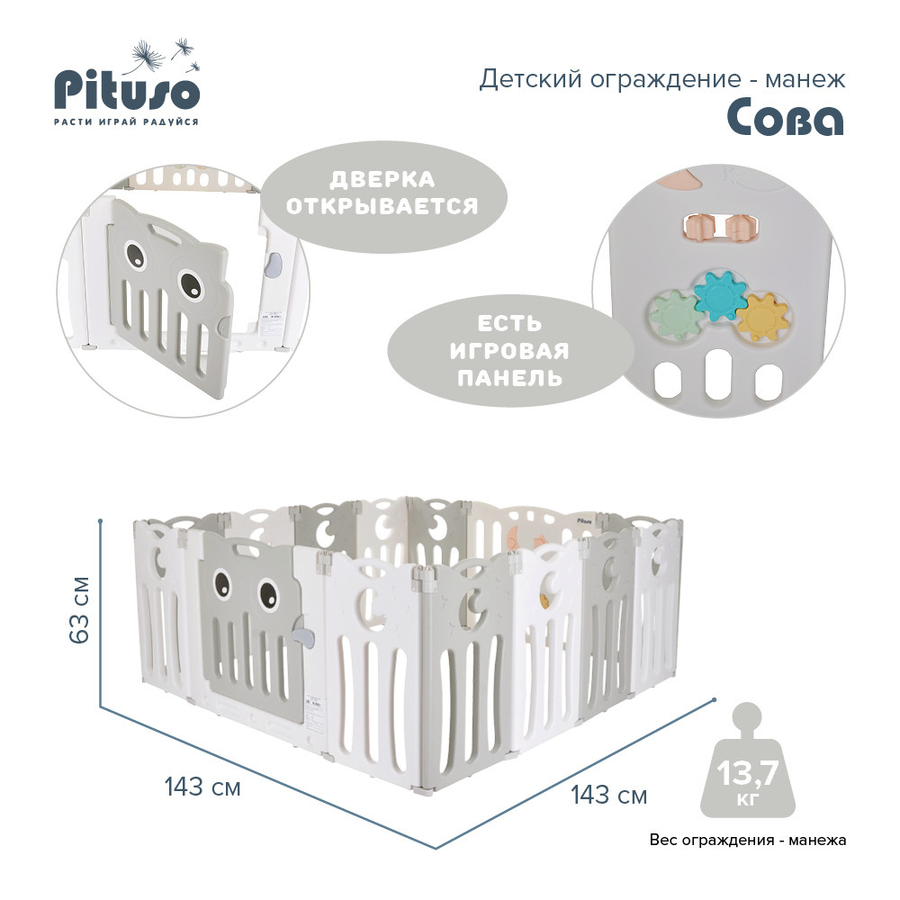 Детский манеж-ограждение Pituso Сова Серый/белый (без шаров) 143х143х63 см
