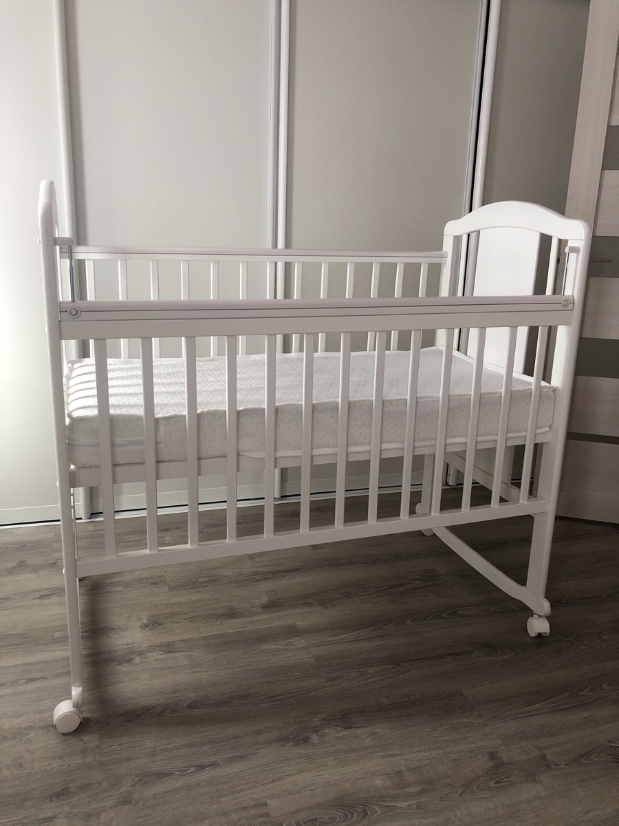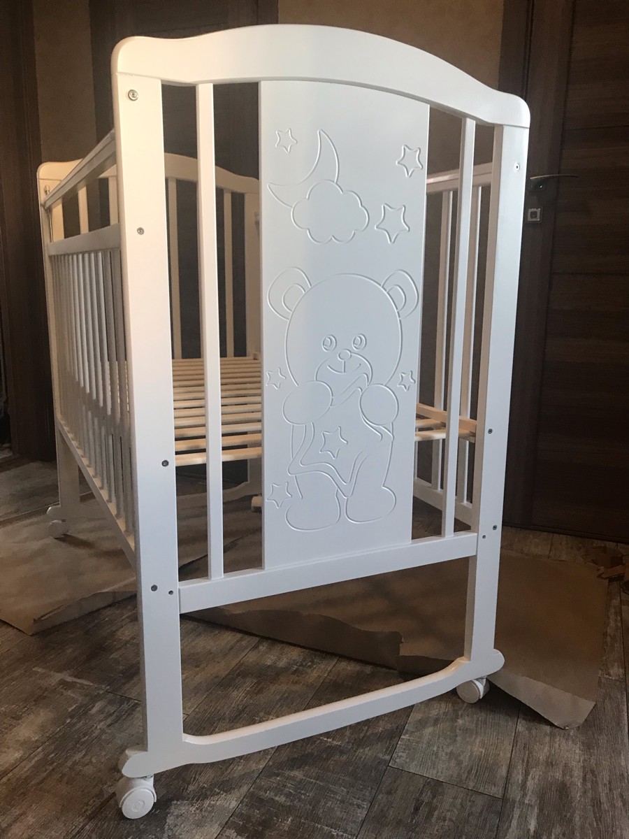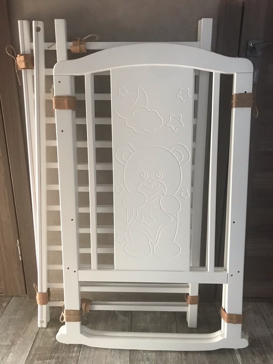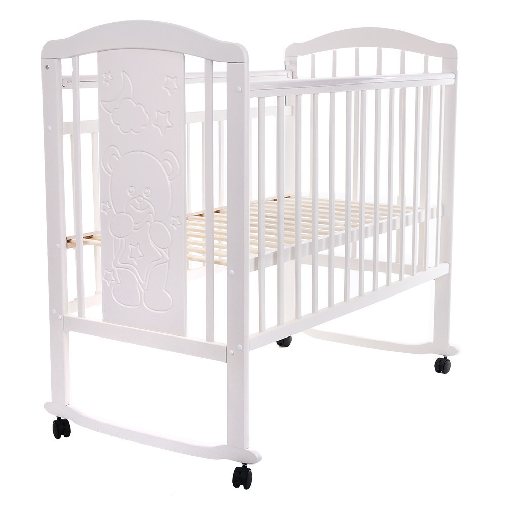 Кровать детская Pituso Noli качалка, съемные колеса со стопорами, для новорожденных Мишутка Белый