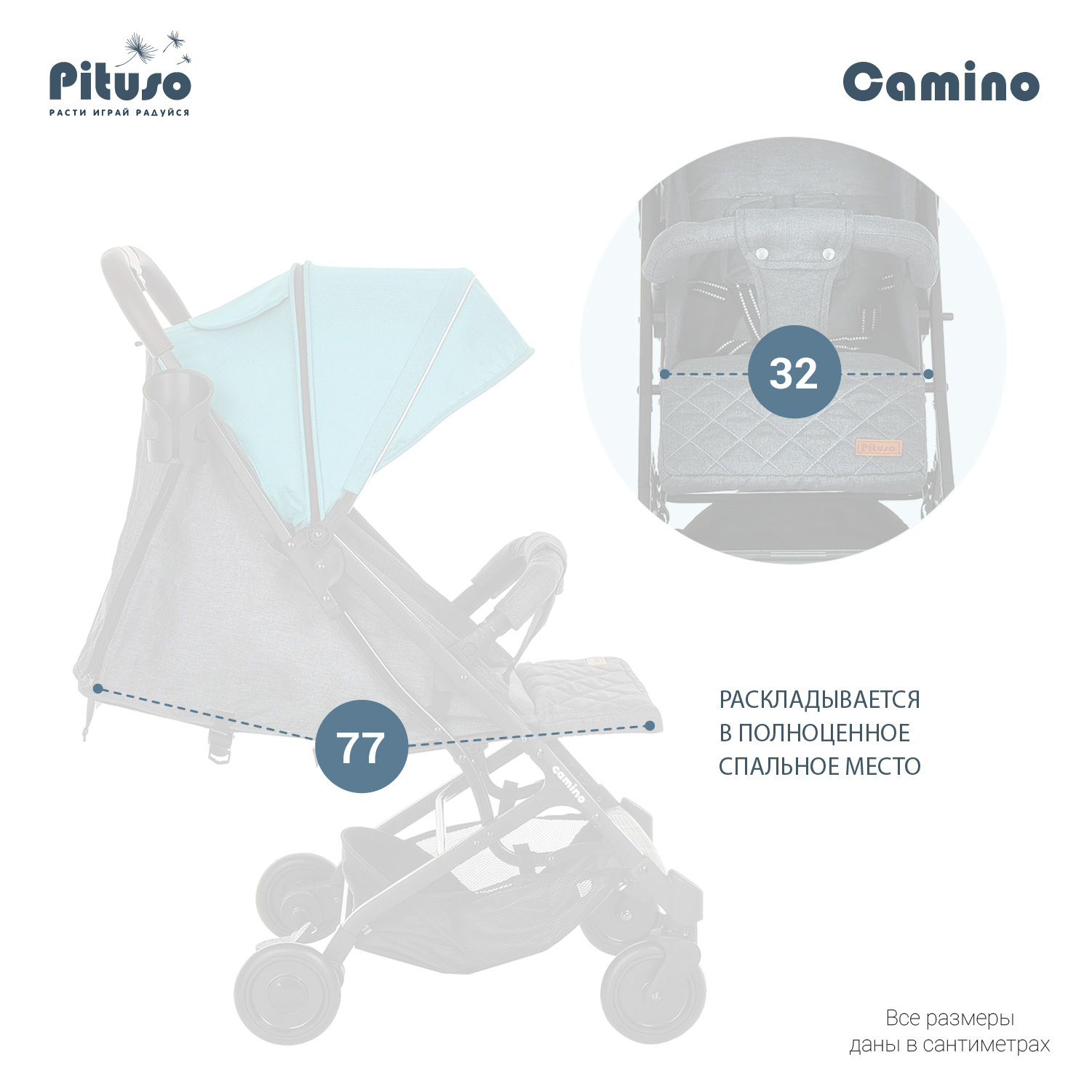 Прогулочная коляска Pituso Camino колеса EVA, чехол на ножки Black/Tiffany/Черный/Морская волна