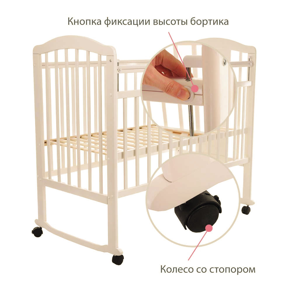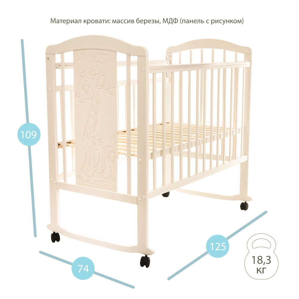 Кровать детская Pituso Noli качалка, колеса со стопорами Жирафик Слоновая кость