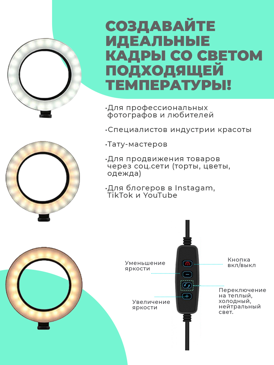 Кольцевая лампа / Светильник / селфи лампа / Блогер бокс / Без штатива