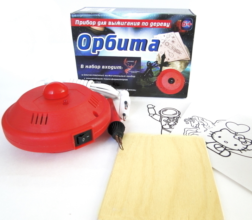 Прибор для выжигания по дереву, выжигатель "Орбита", дощечка в комплекте