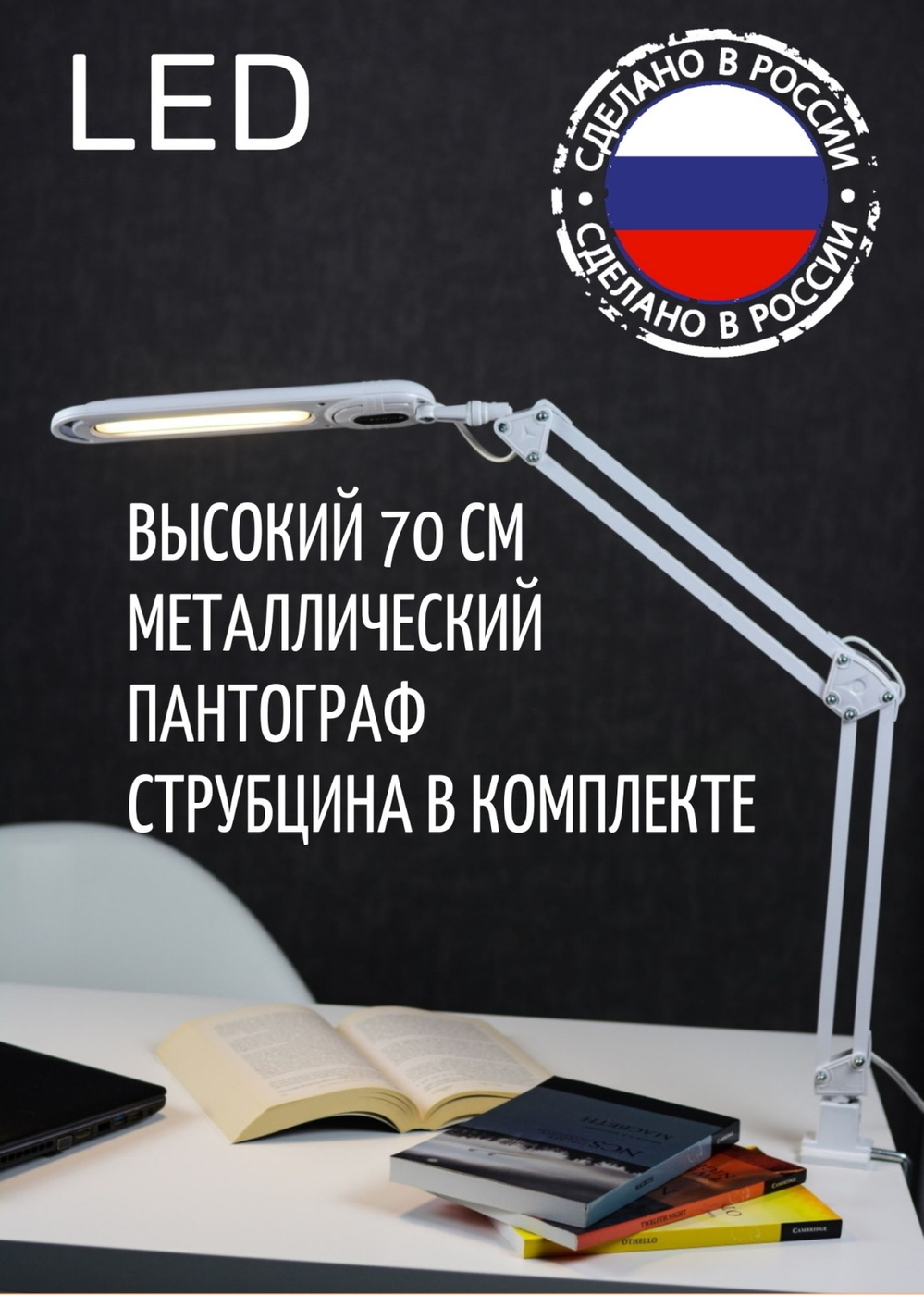 Лампа настольная светодиодная, светильник НТ2-12 белый, высота 70 см, сенсор