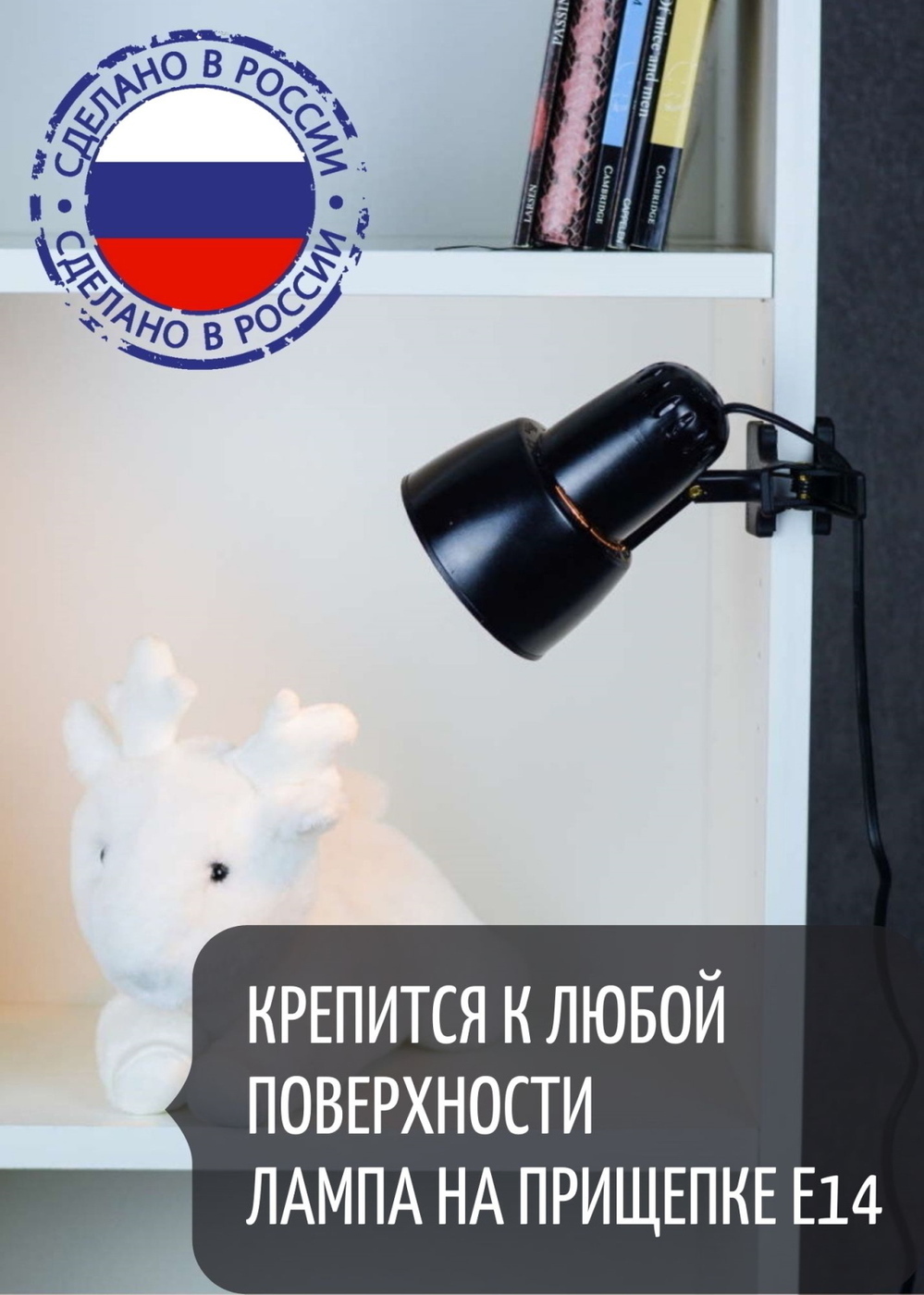 Лампа на прищепке, светильник настольный НТ0-34А белый E14 40 Вт