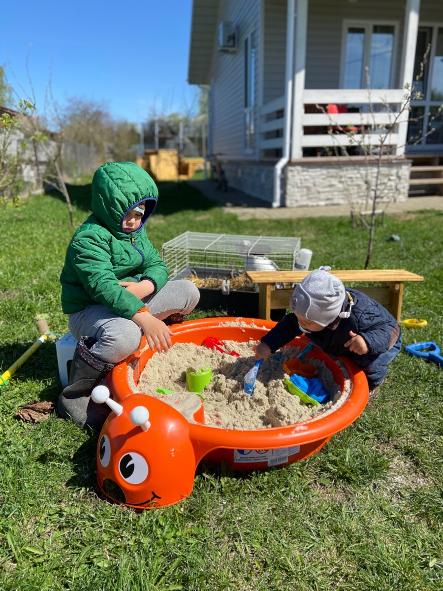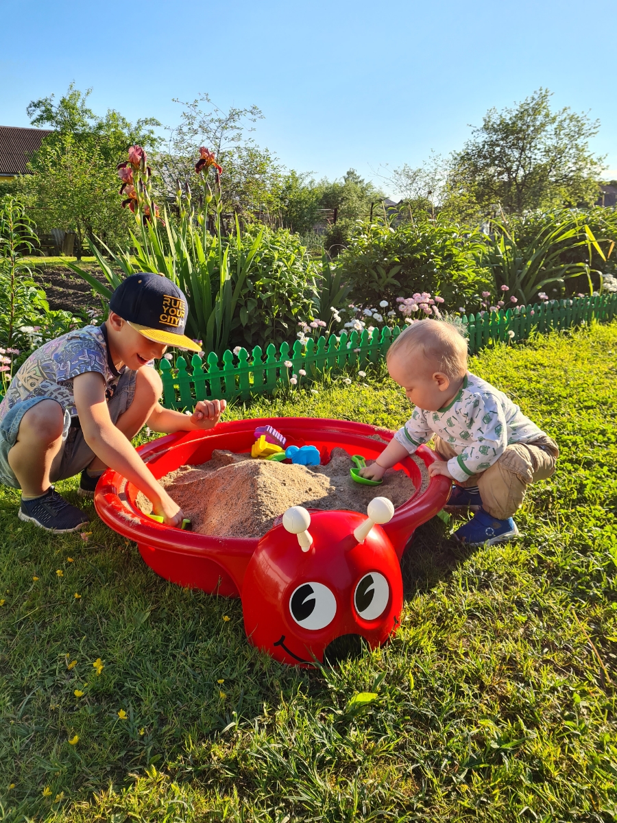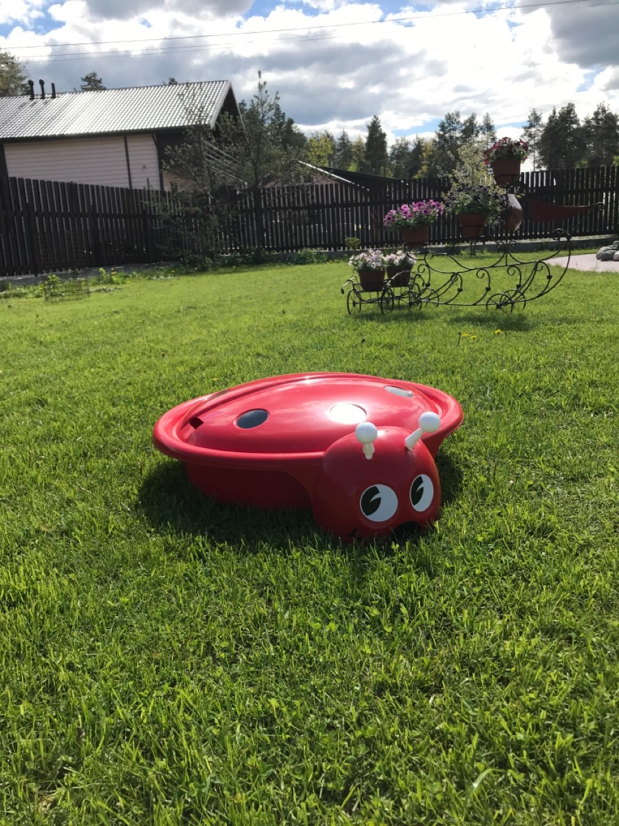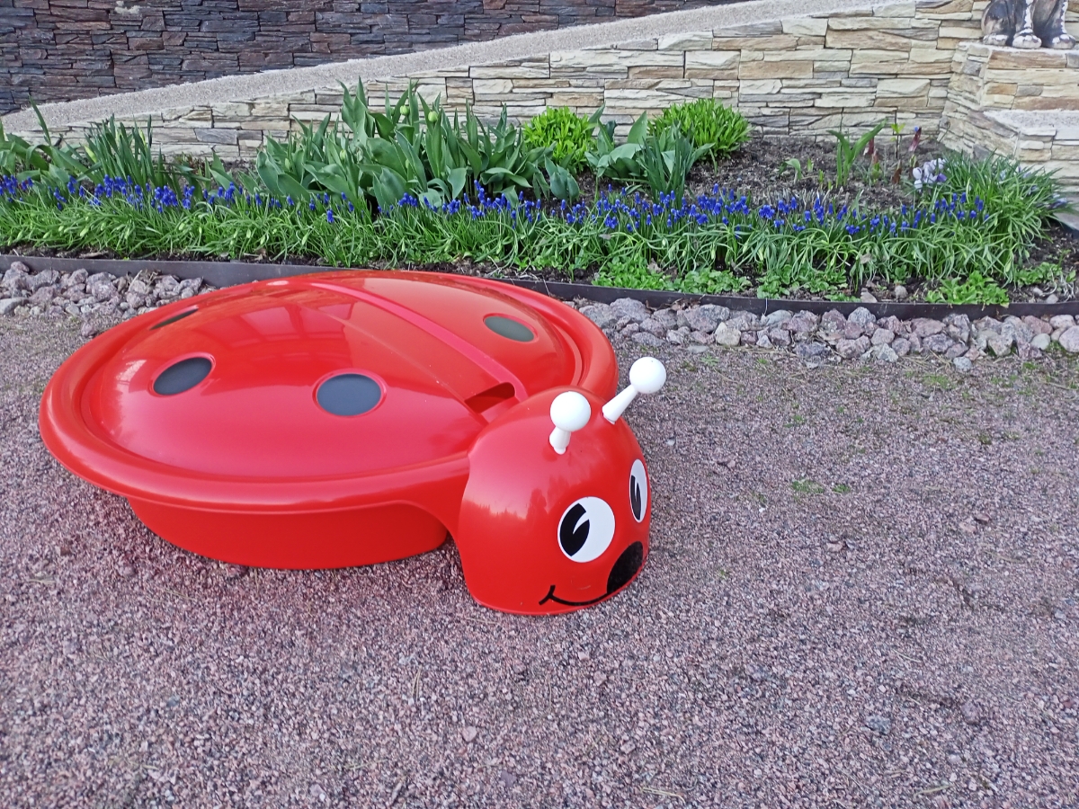 Пластик Песочница-бассейн для малышей "Божья коровка" с крышкой, красная