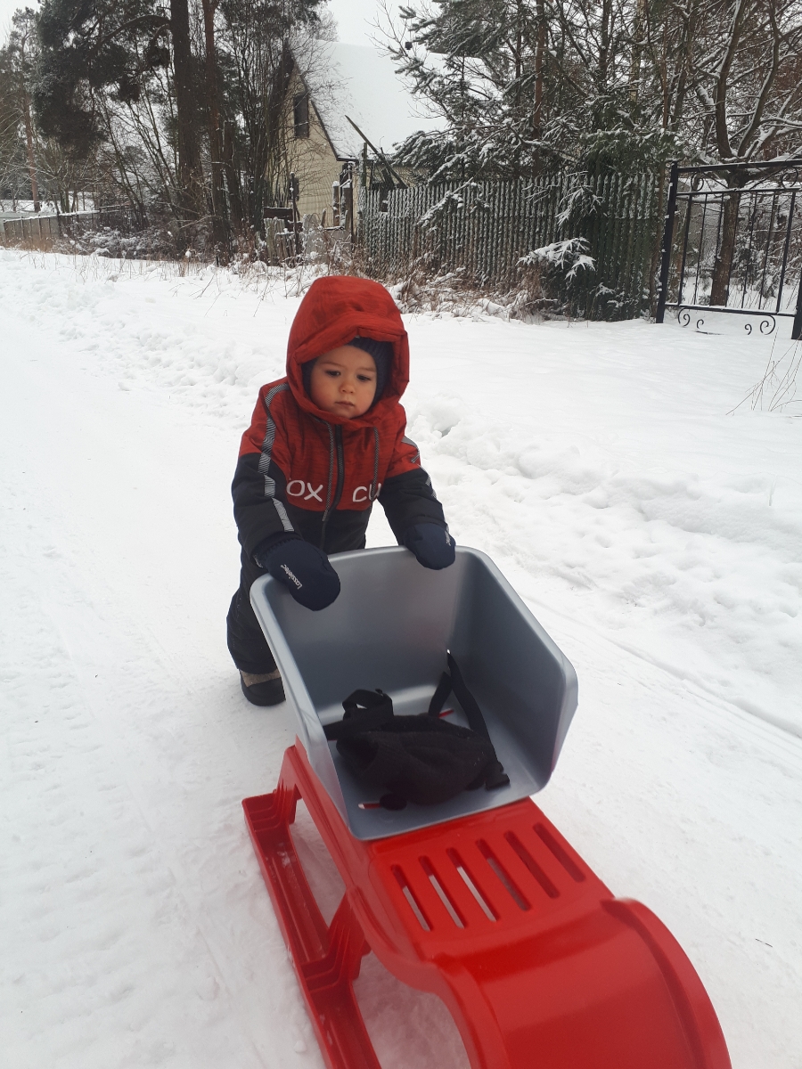 Санки "Снежная звезда" со спинкой (красный/серый)
