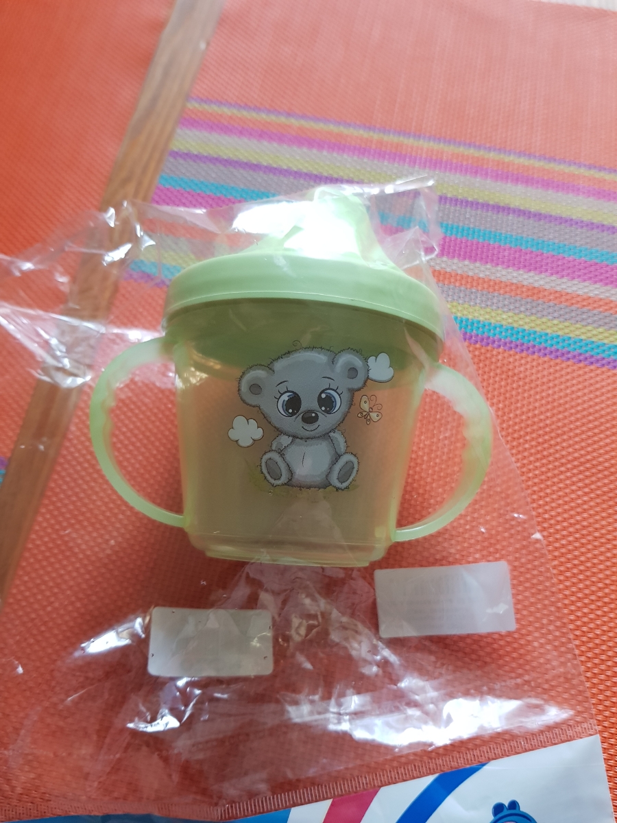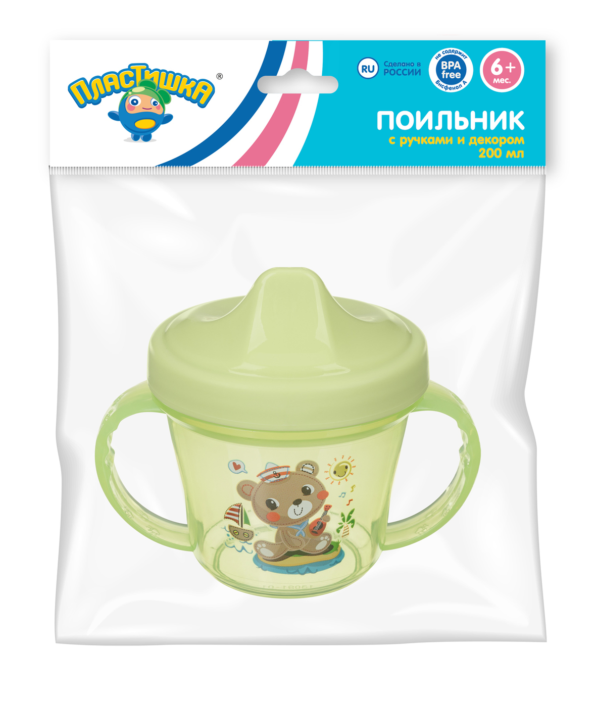 Поильник с ручками и декором, 200 мл (Салатовый)