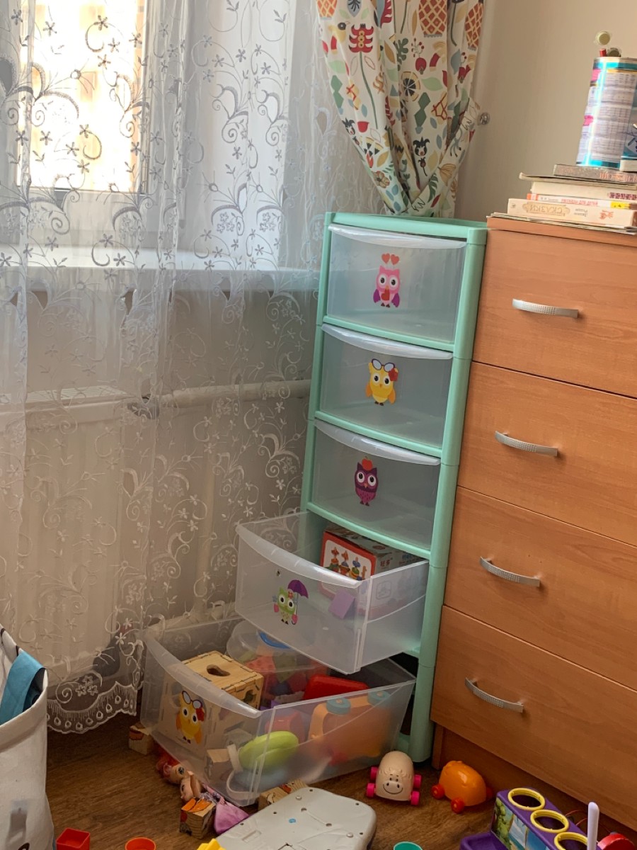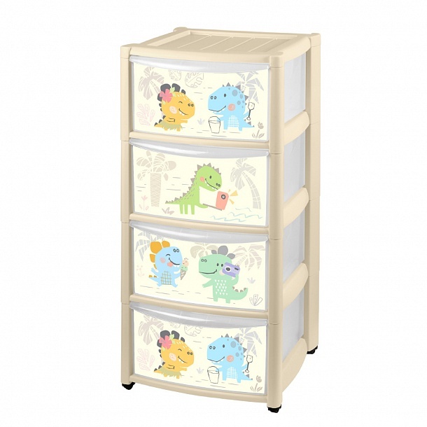 Комод детский на колесах с аппликацией 4 ящика бежевый