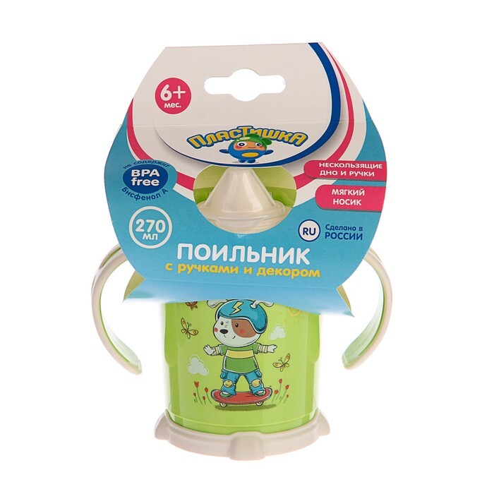 Набор Пластишка детский Поильник 270 мл + нагрудник детский, розовый