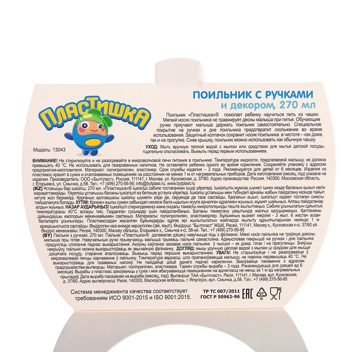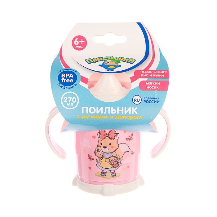 Поильник с ручками Пластишка 270 мл, светло-розовый