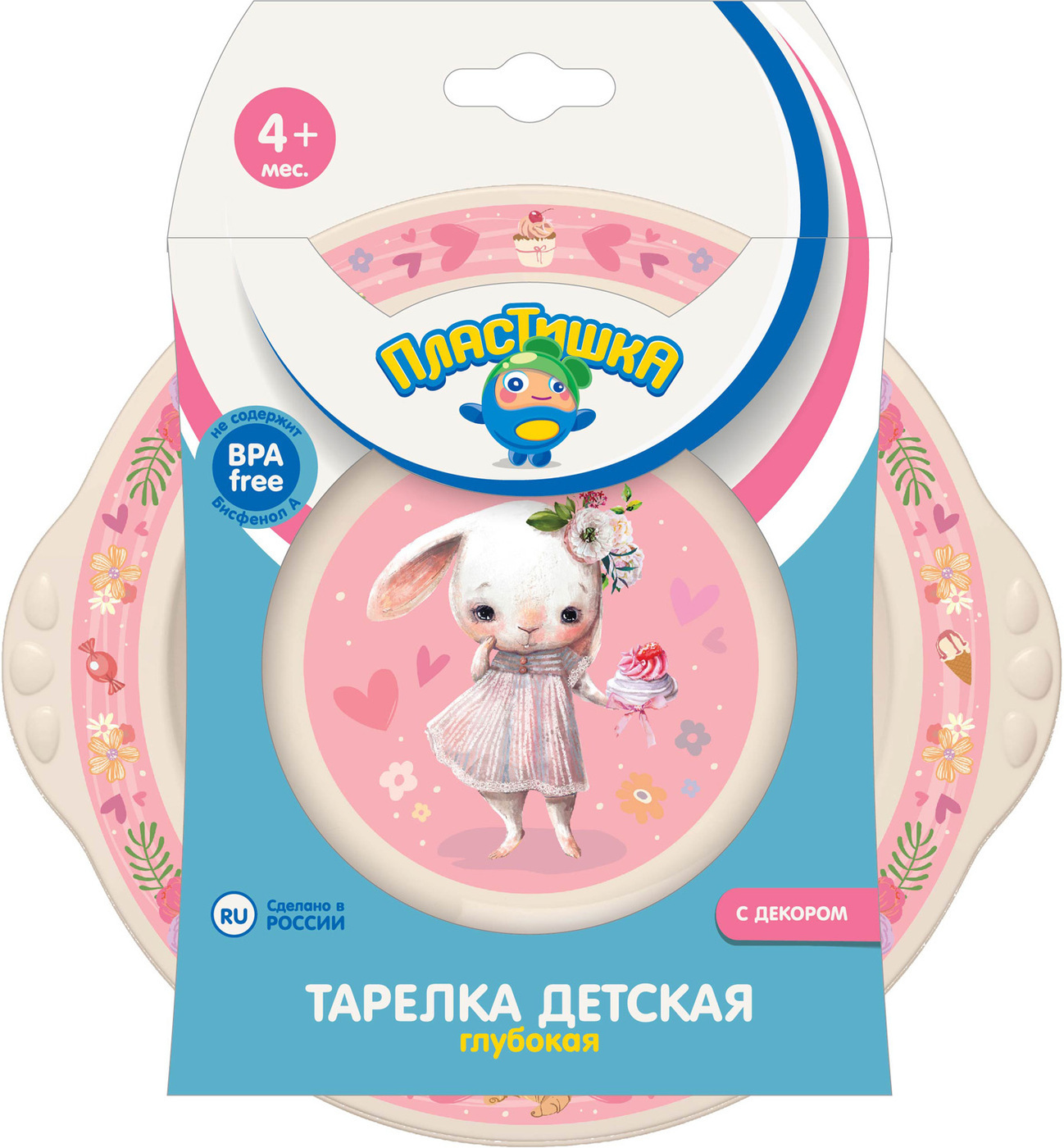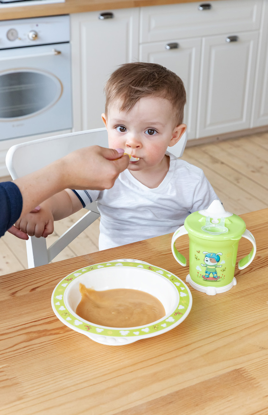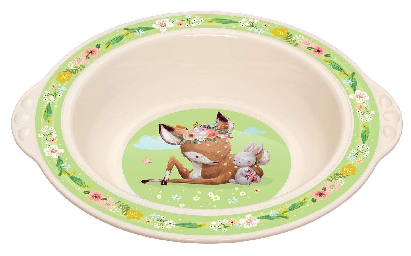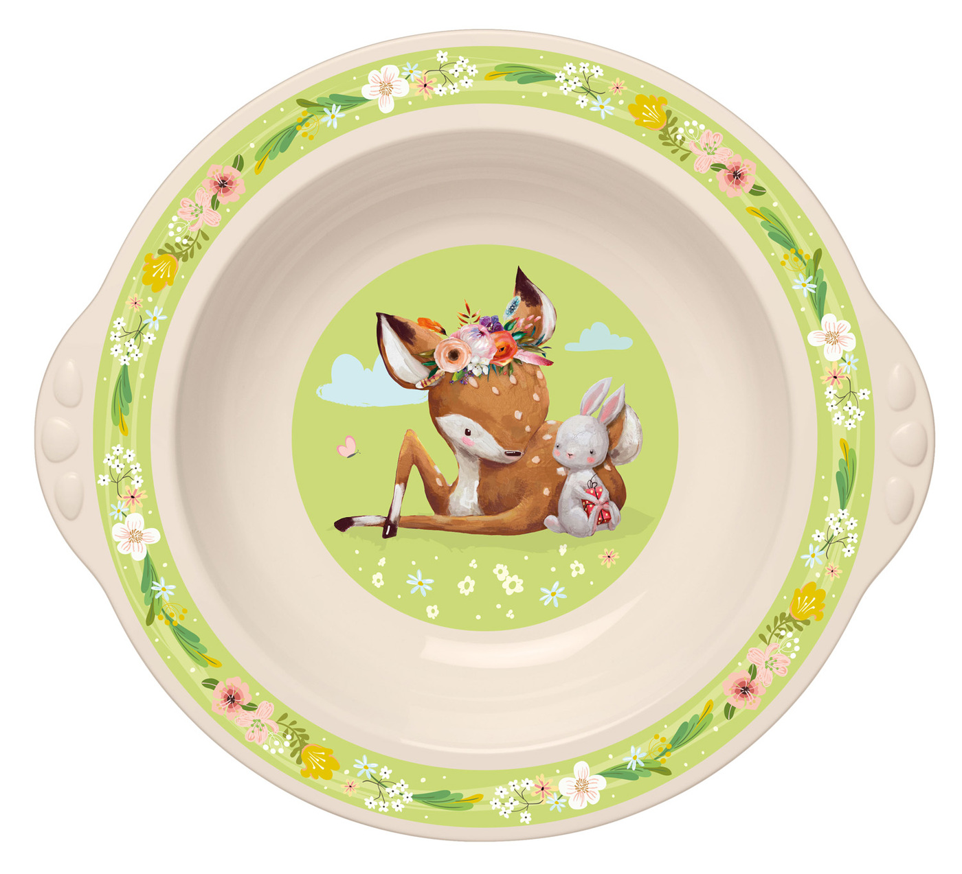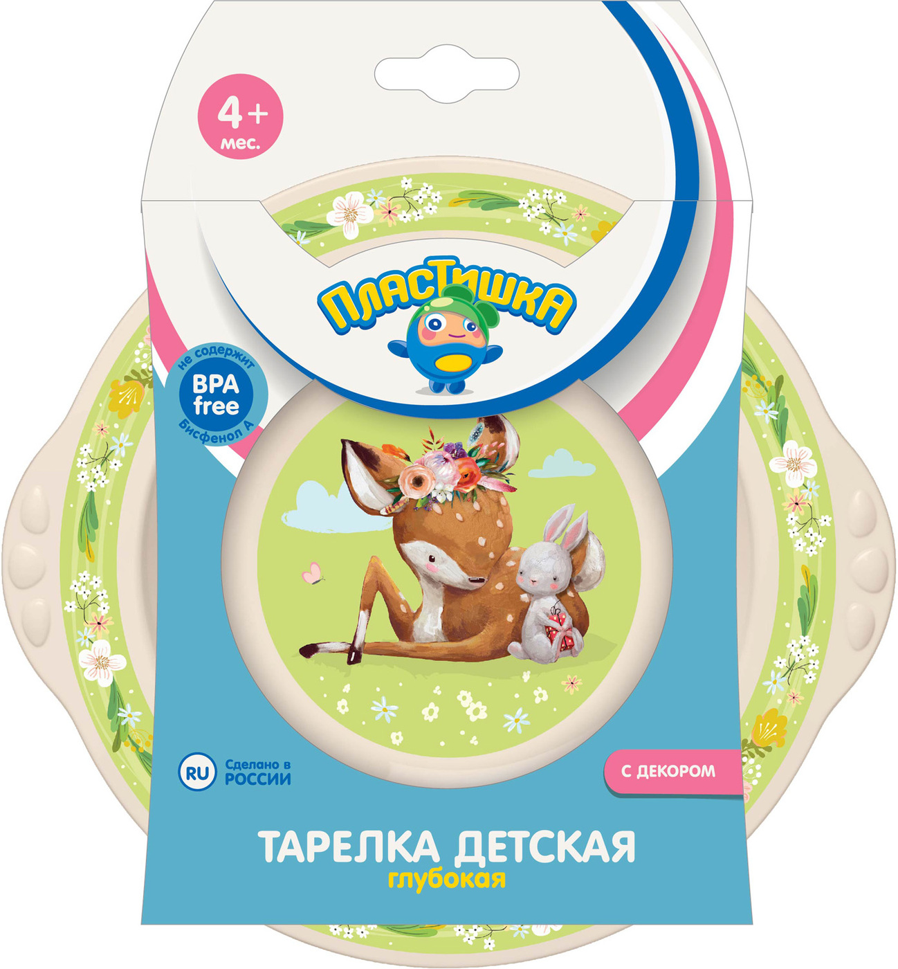 Тарелка детская глубокая с зеленым декором (бежевый)