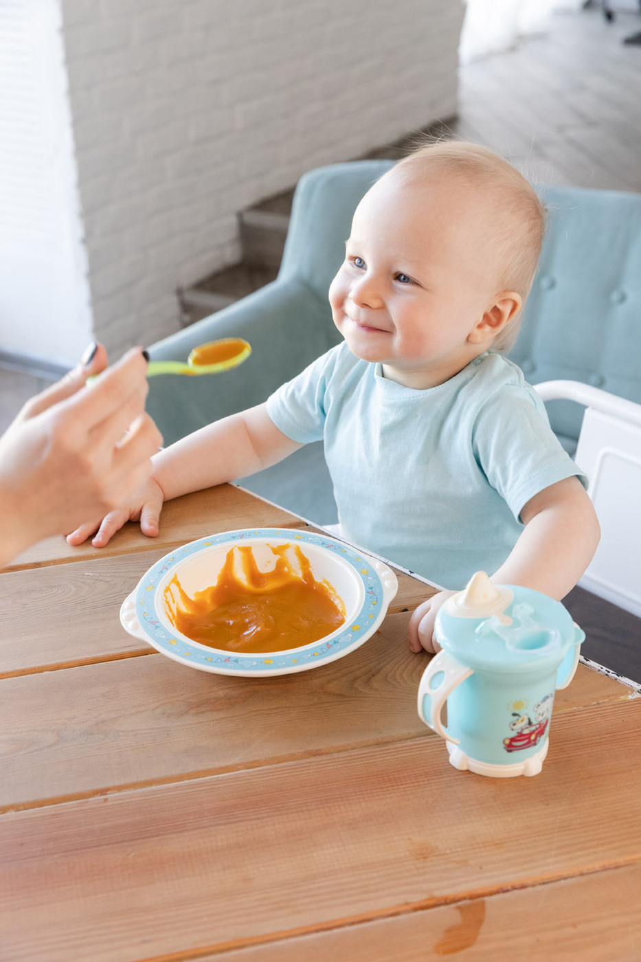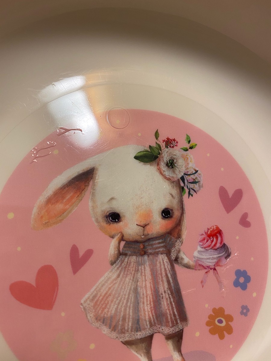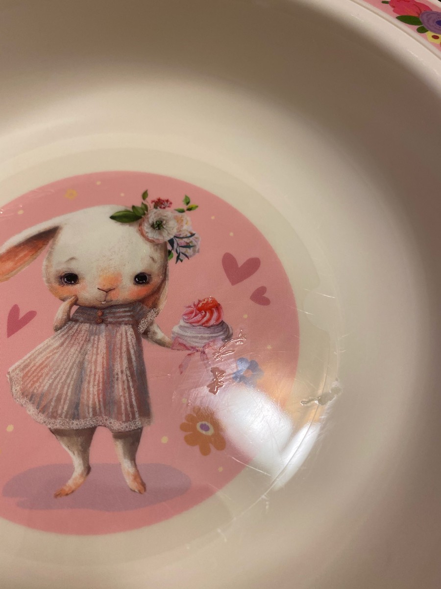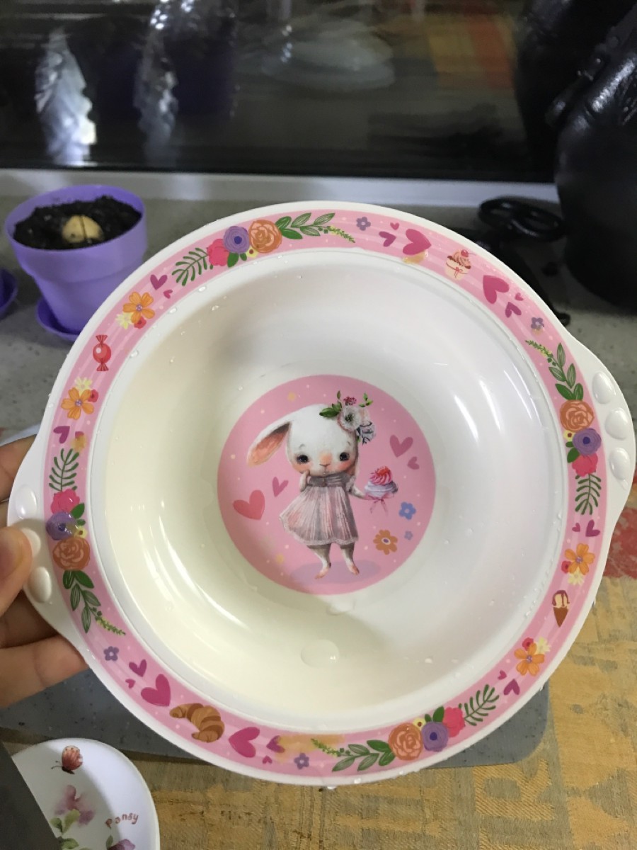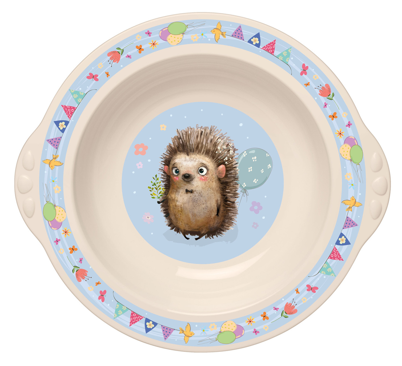 Тарелка детская глубокая с зеленым декором (бежевый)