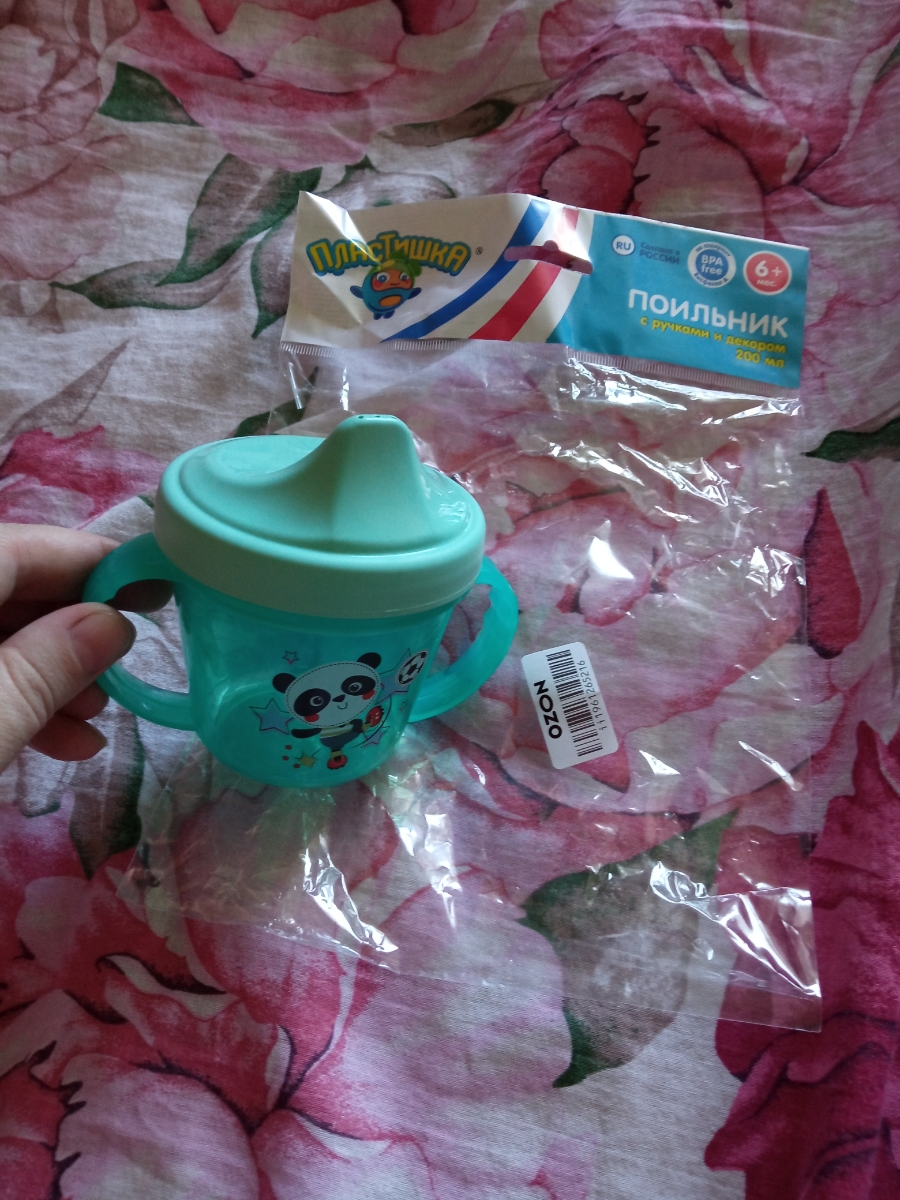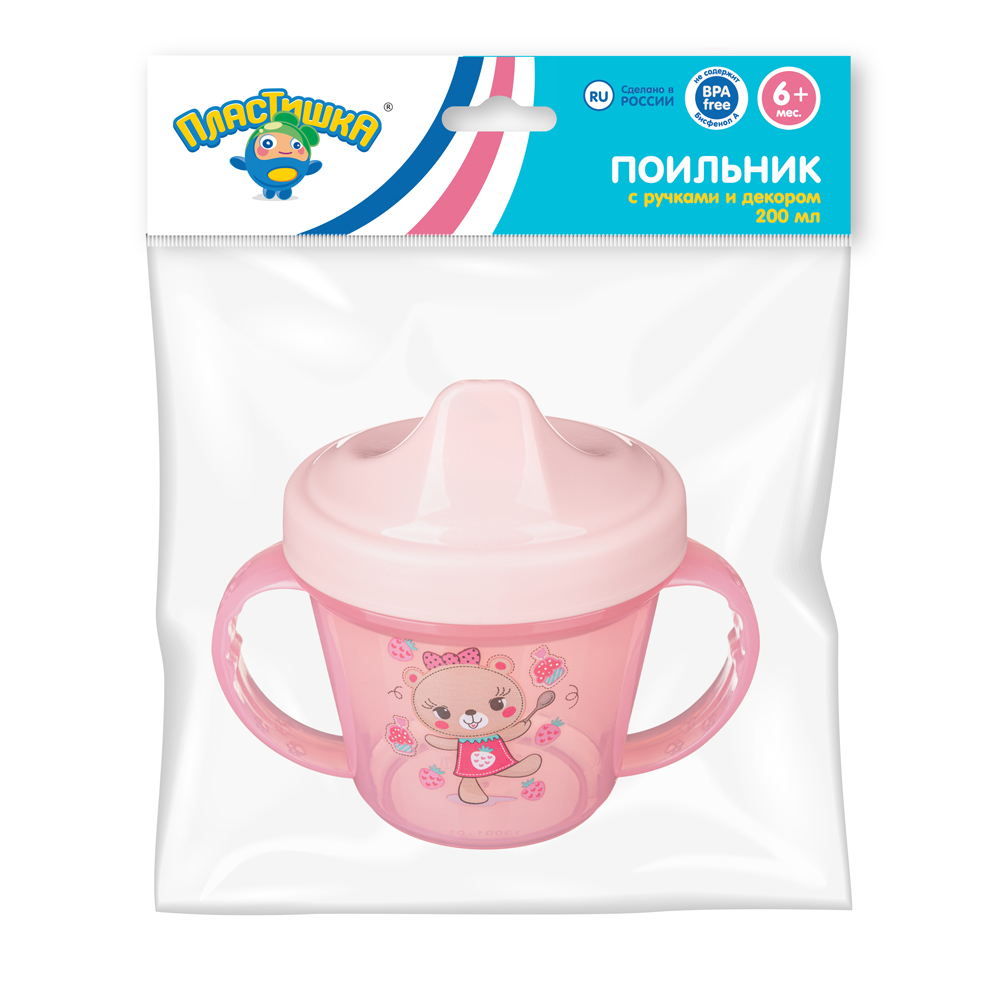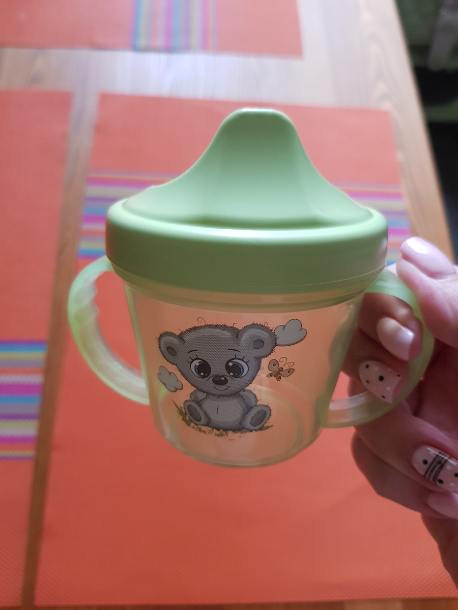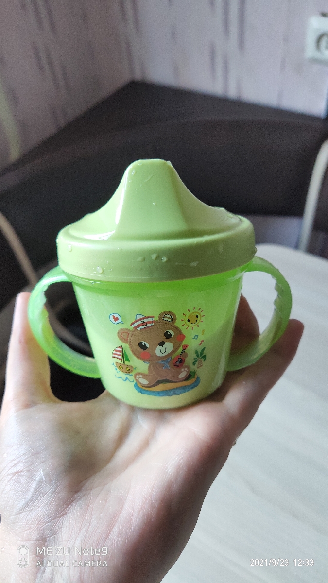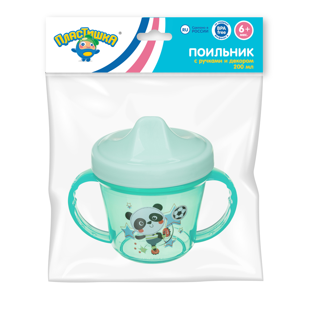 Поильник с ручками и декором, 200 мл (Салатовый)