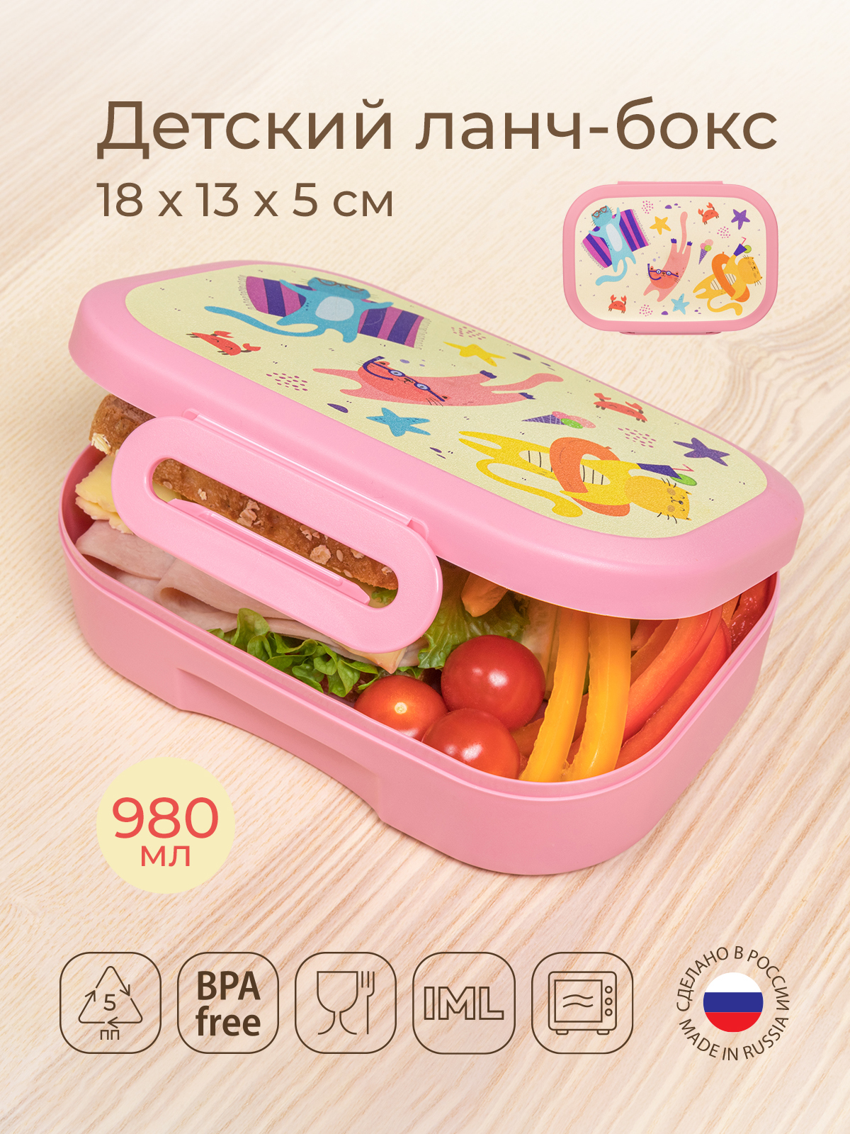 Ланч-бокс Пластишка "Коты", 980 мл, 1 шт