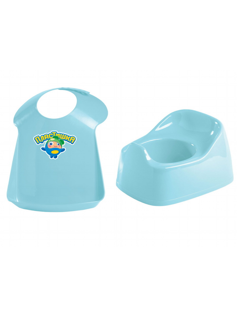 Набор для малыша: Горшок детский голубой + нагрудник голубой
