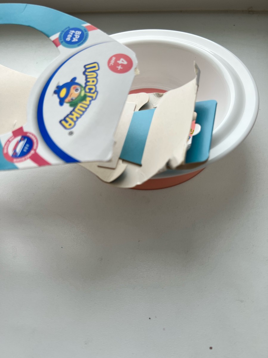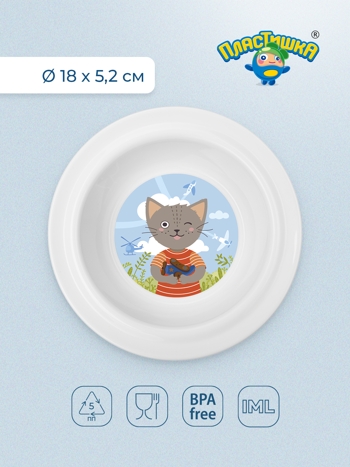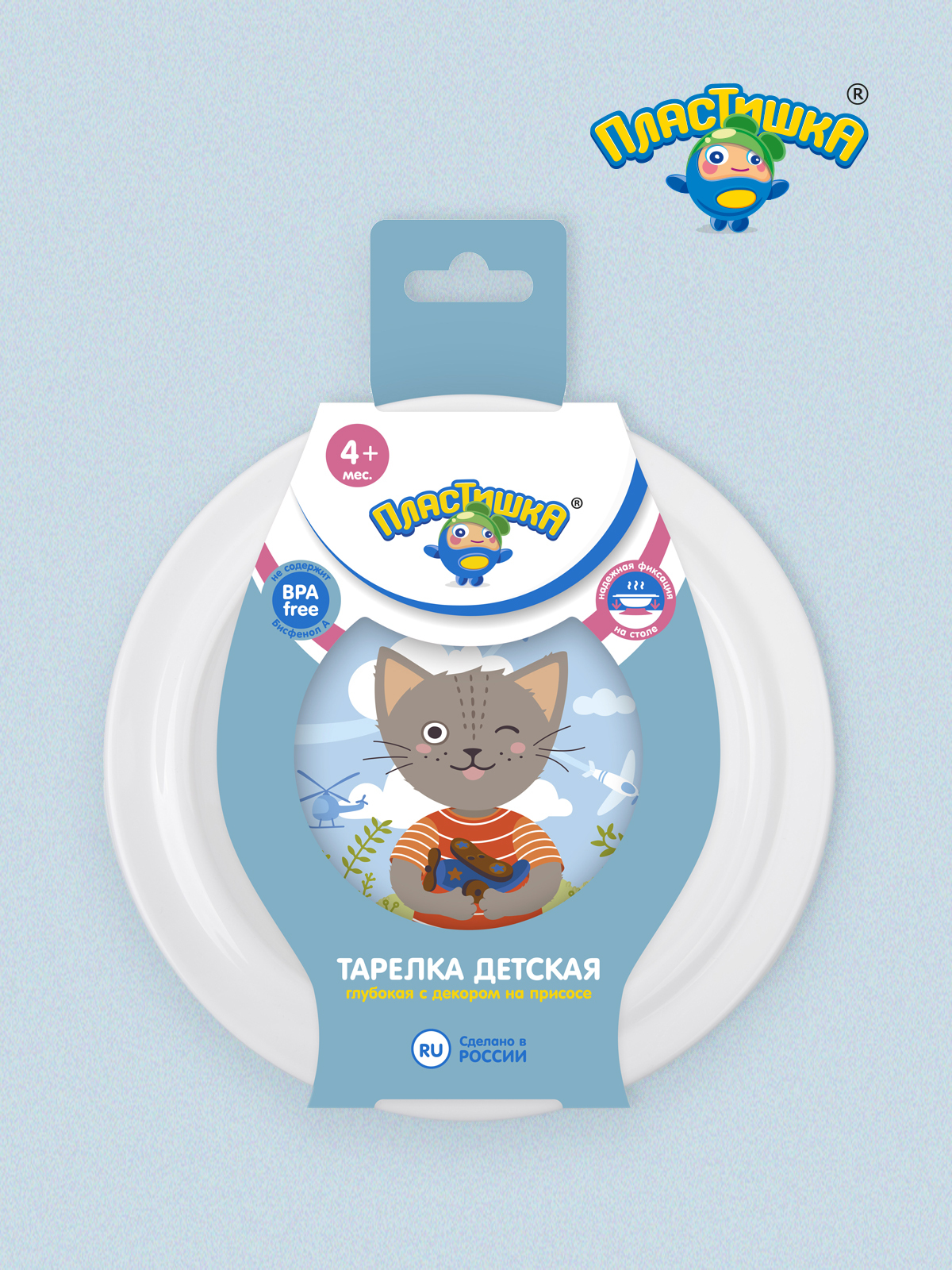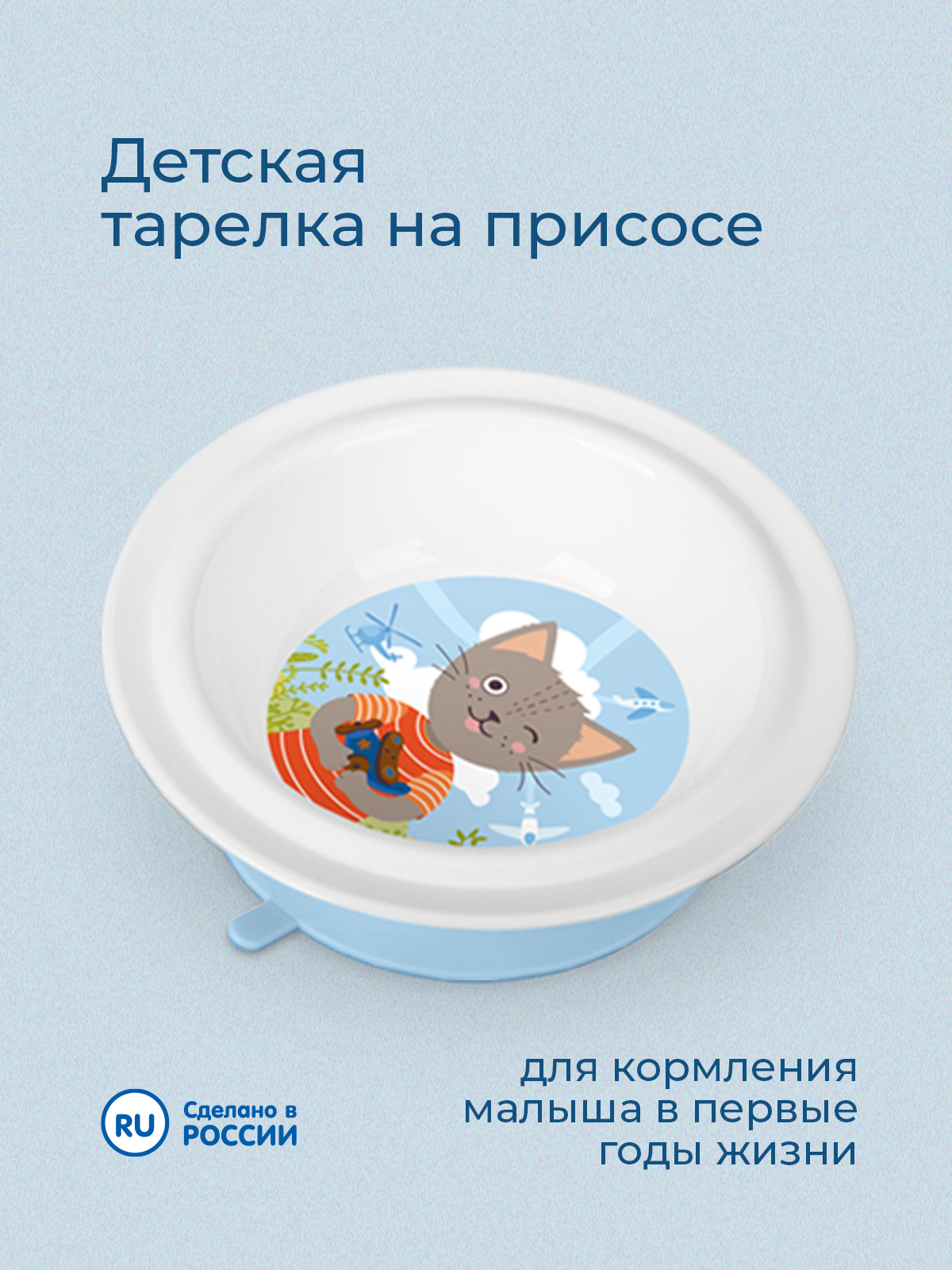 Тарелка детская глубокая на присосе с голубым декором (белый)