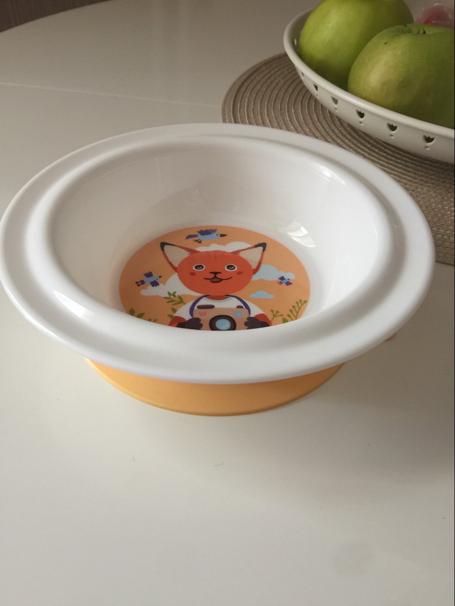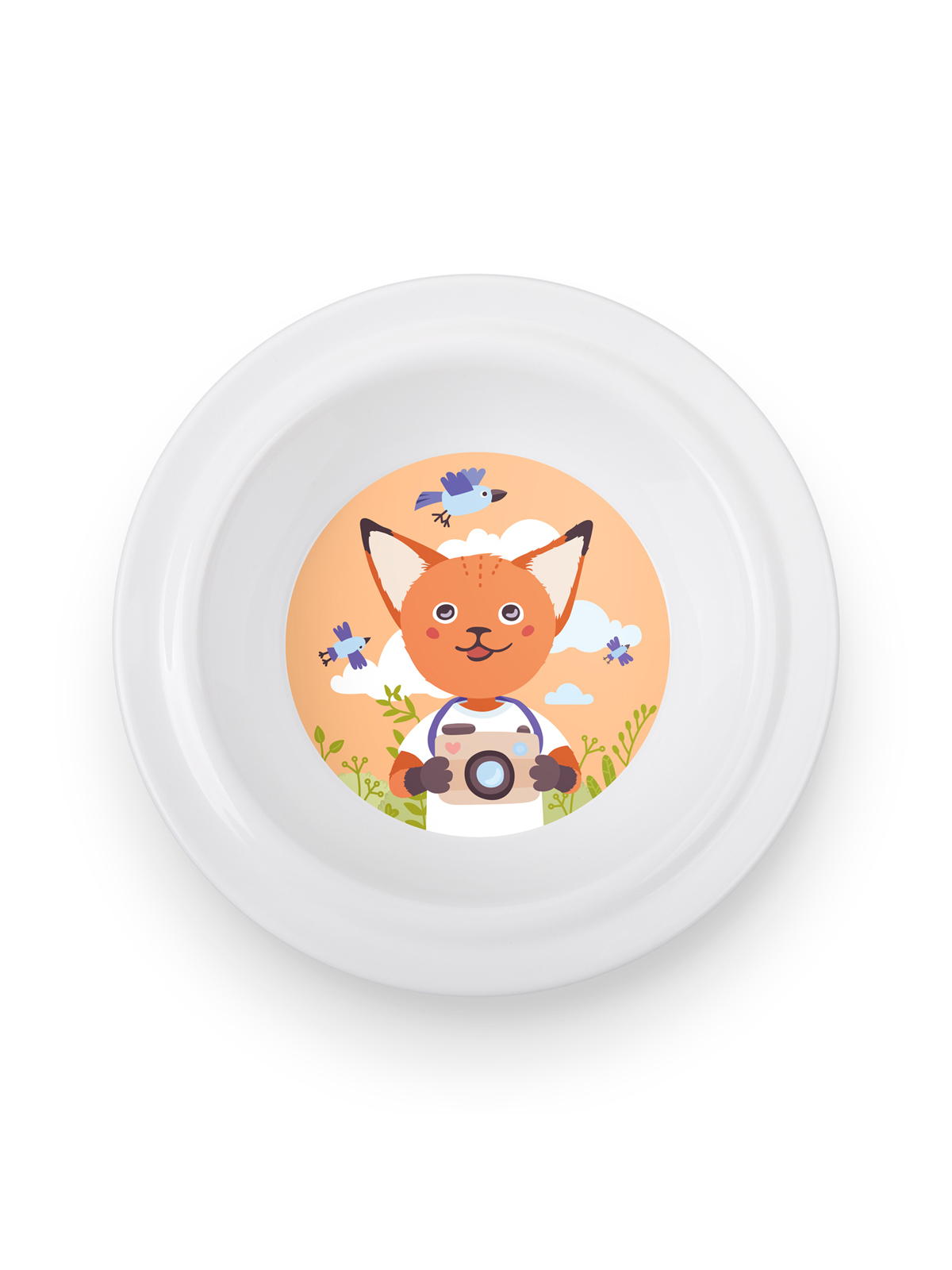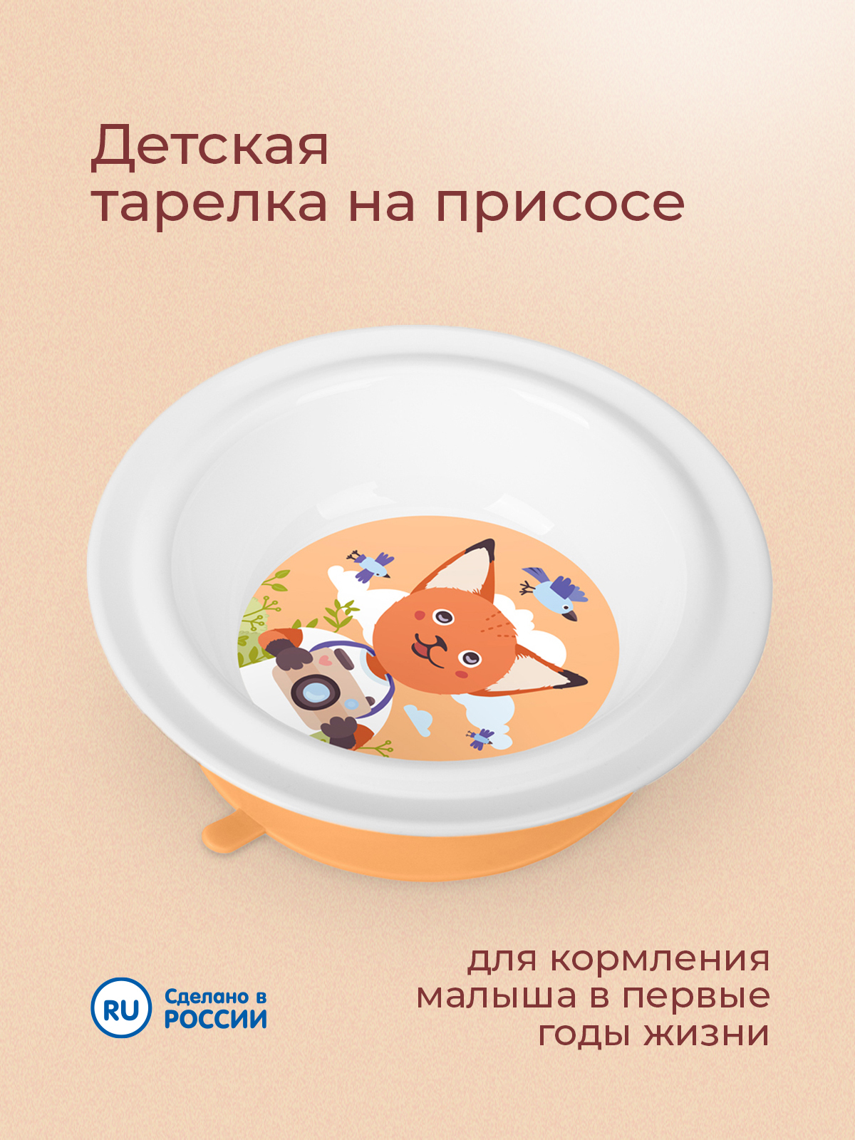 Тарелка детская глубокая на присосе с оранжевым декором (белый)