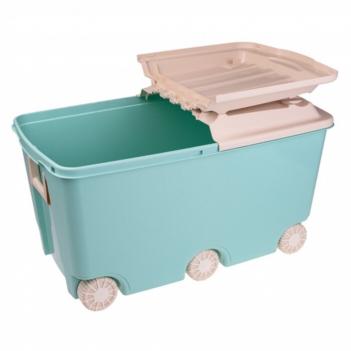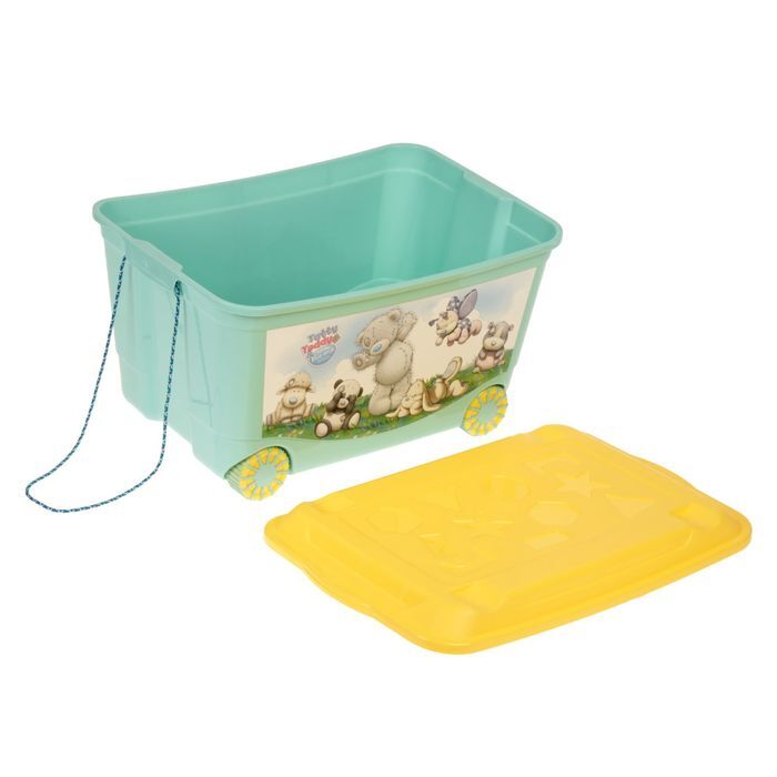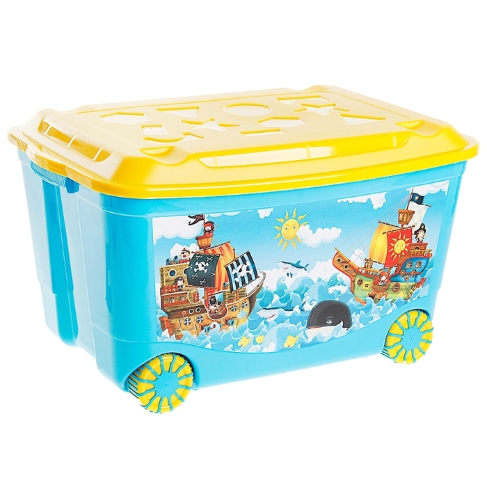 Ящик для игрушек на колёсах с аппликацией, цвет голубой