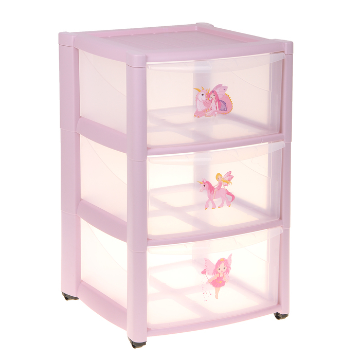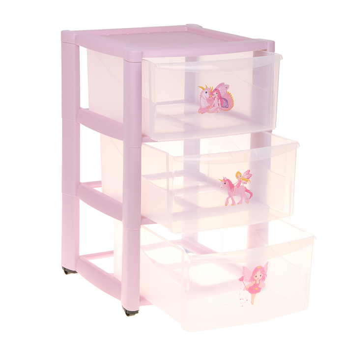 Комод детский на колёсах, 3 ящика, цвет розовый