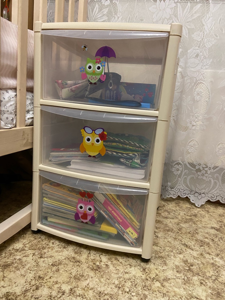 Комод детский на колесах с аппликацией 4 ящика бежевый