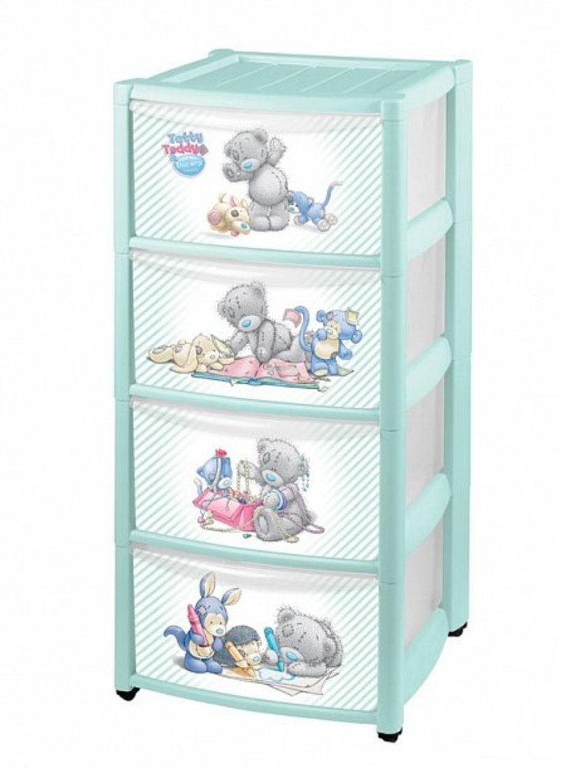 Комод детский на колесах с выдвижными ящиками с аппликацией 4 ящика светло-голубой