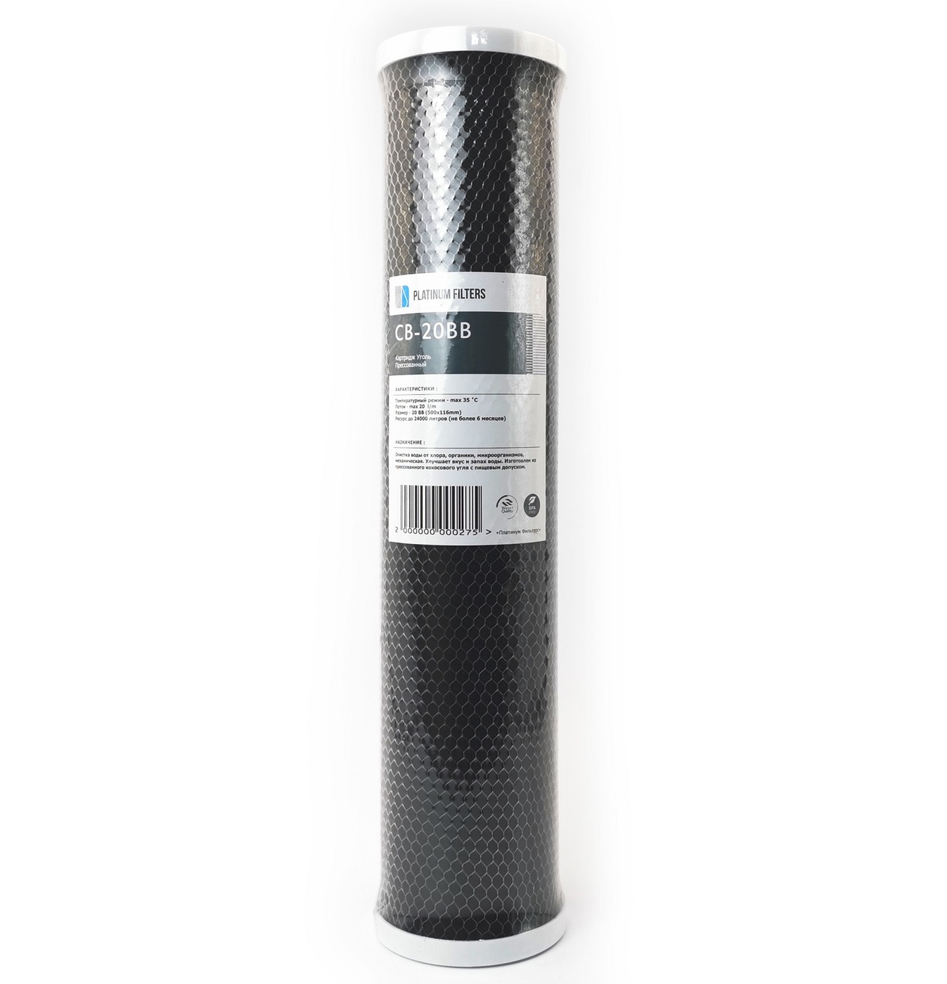 Картридж угольный из прессованного угля Platinum Filters CB-20BB