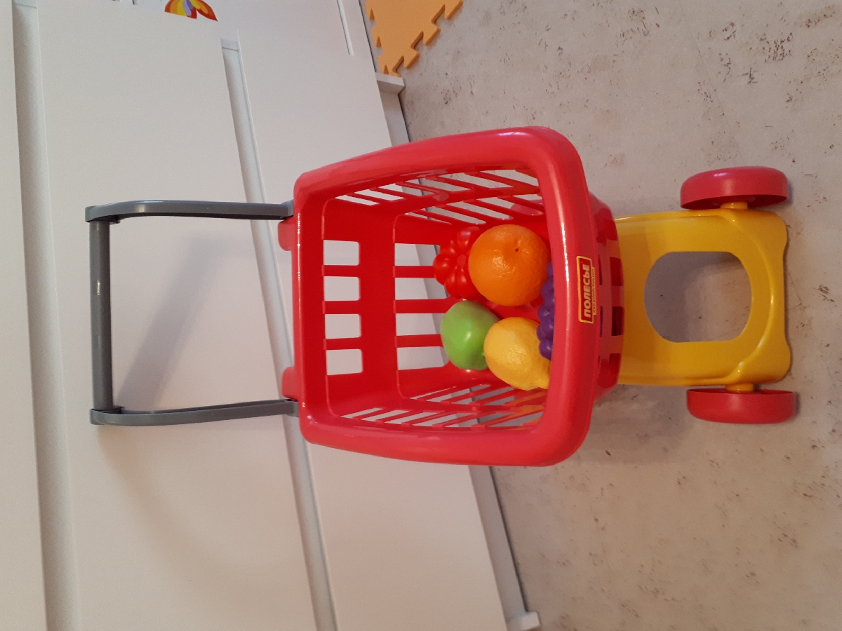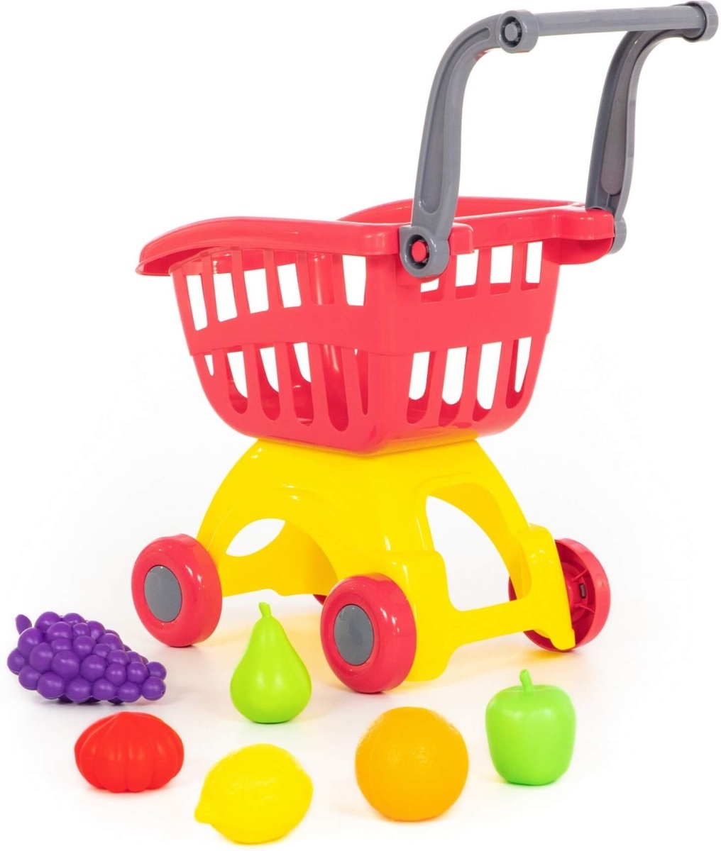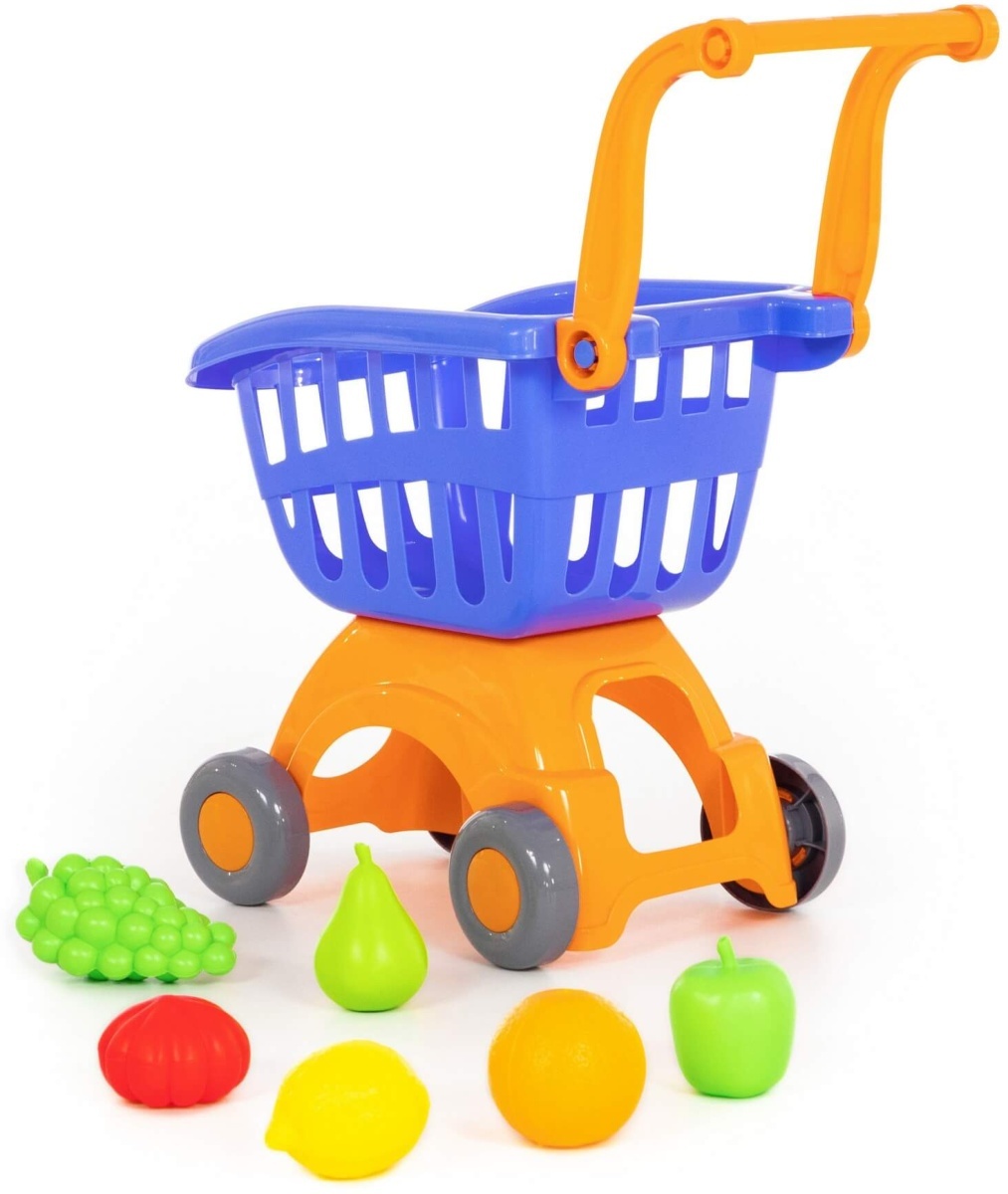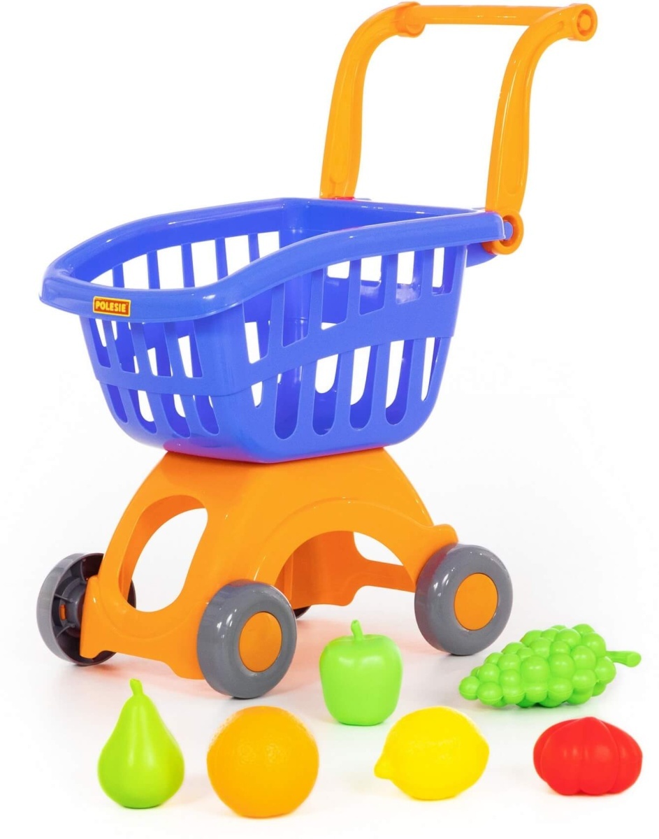 Тележка для маркета Полесье "Мини" + набор продуктов №3, 6 элементов, цвет в ассортименте