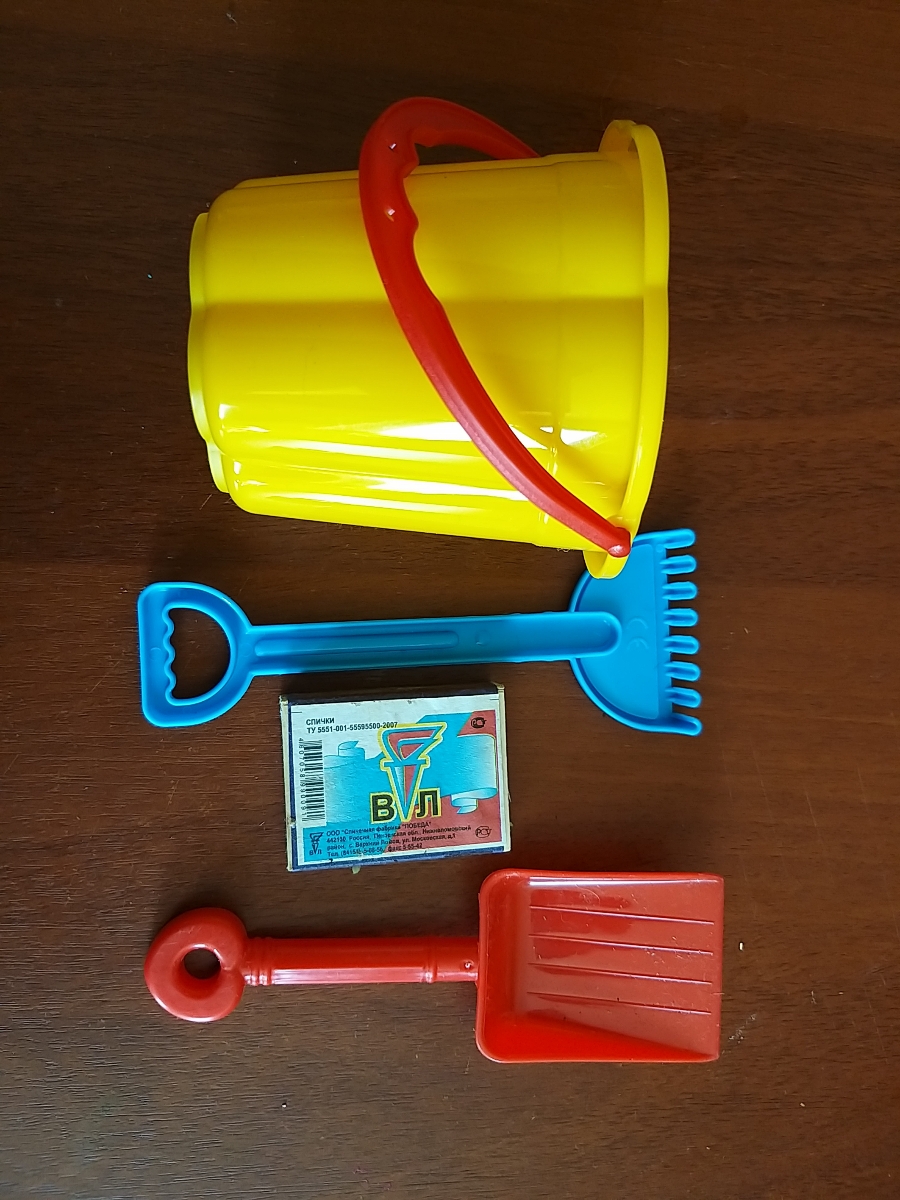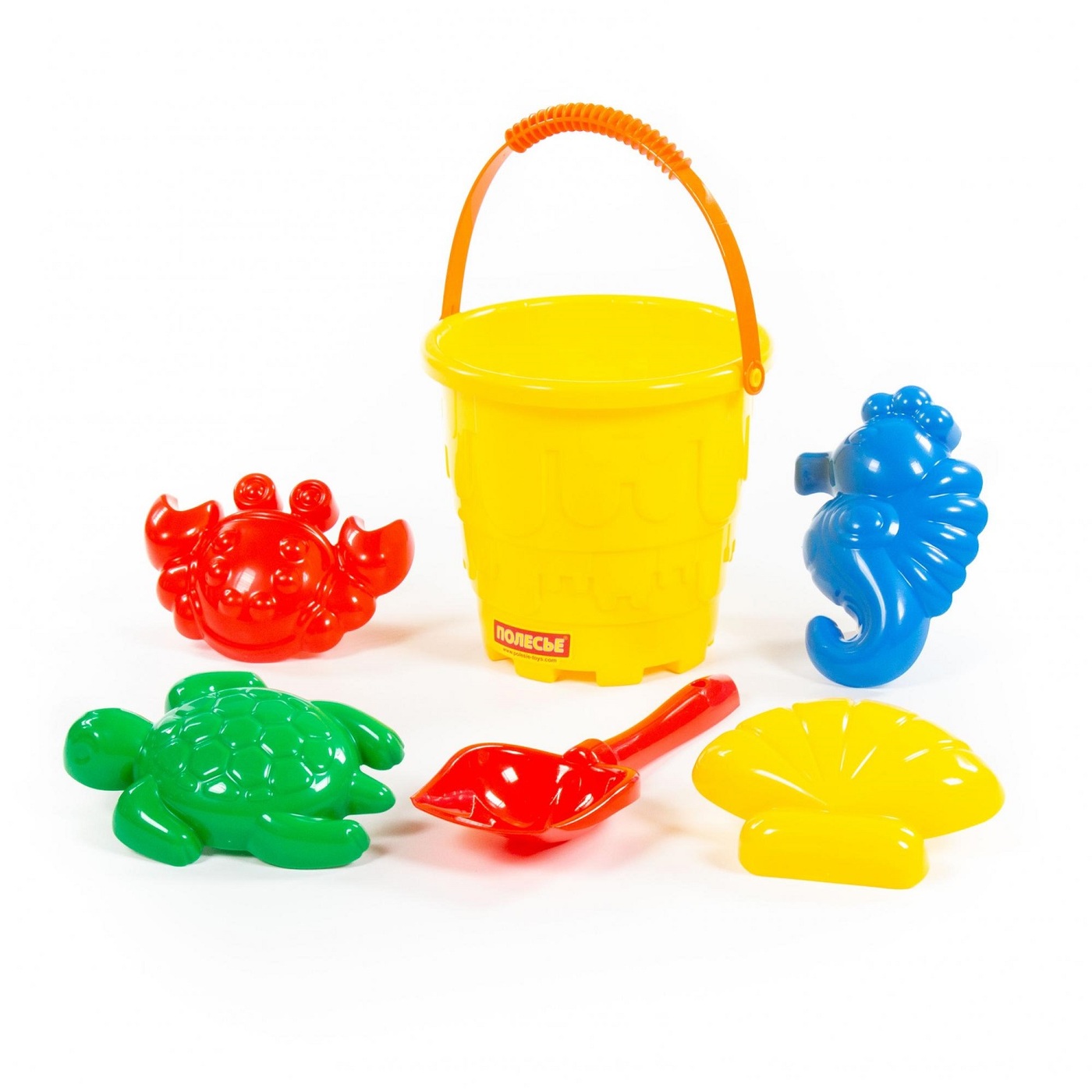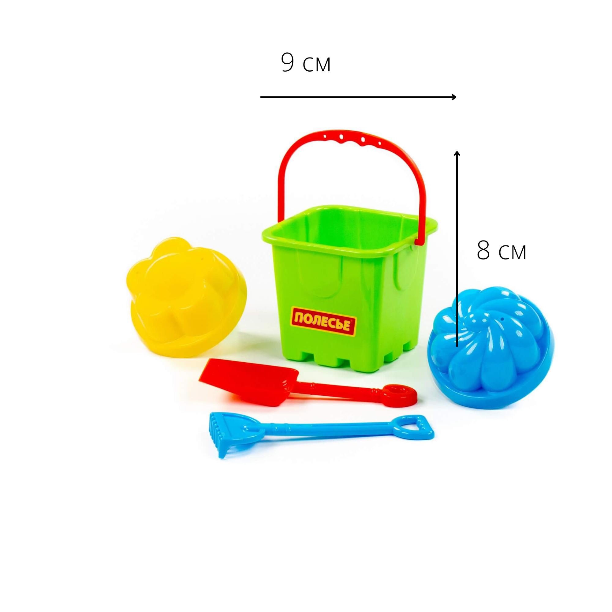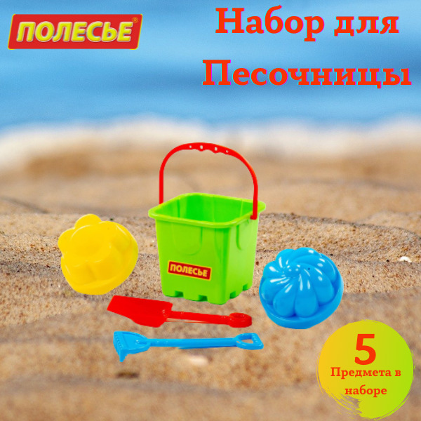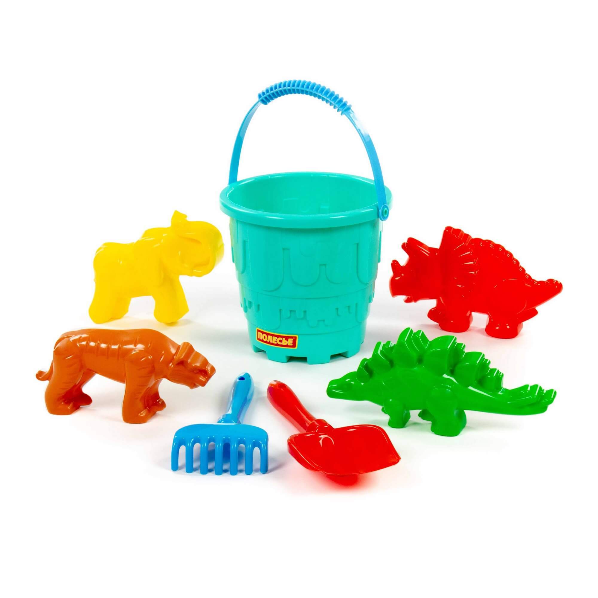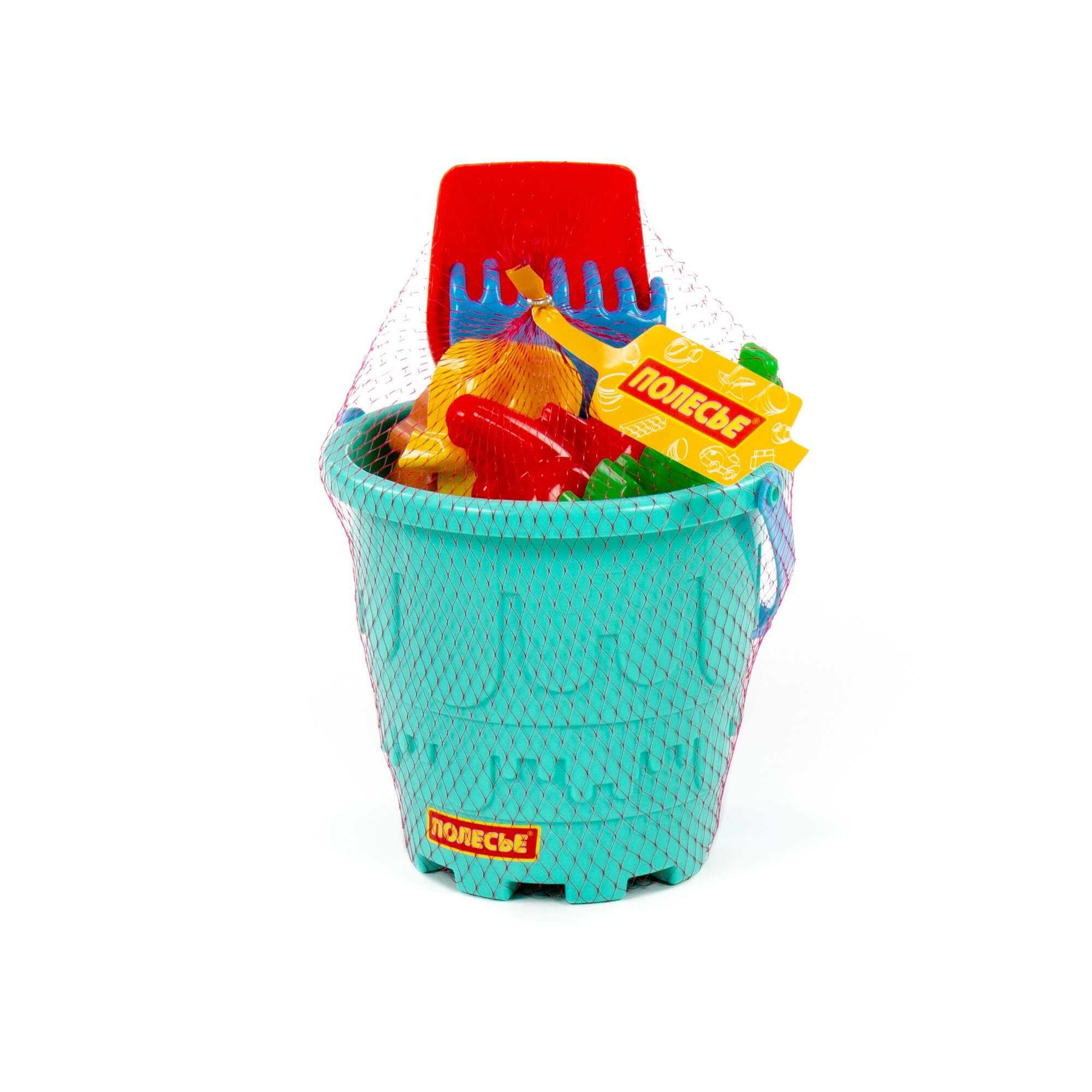 Песочный набор №527 Полесье (Ведро-замок большое, лопатка, грабельки, 4 формочки)
