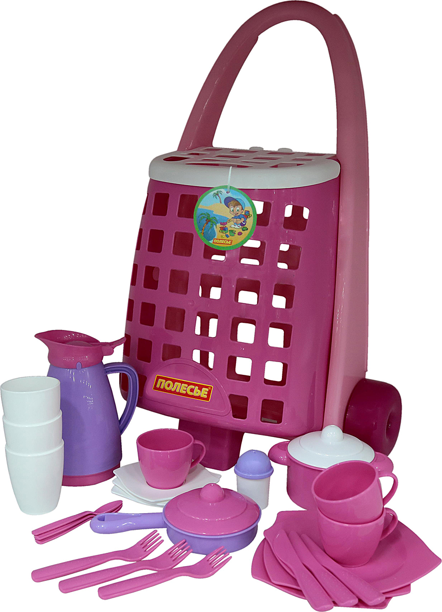 Тележка забавная + набор детской посуды (31 элемент)