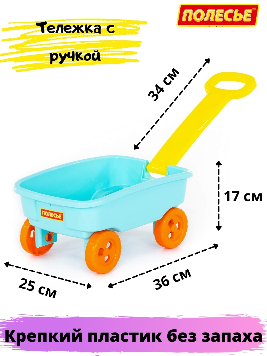 Тележка голубая детская с ручкой, Полесье