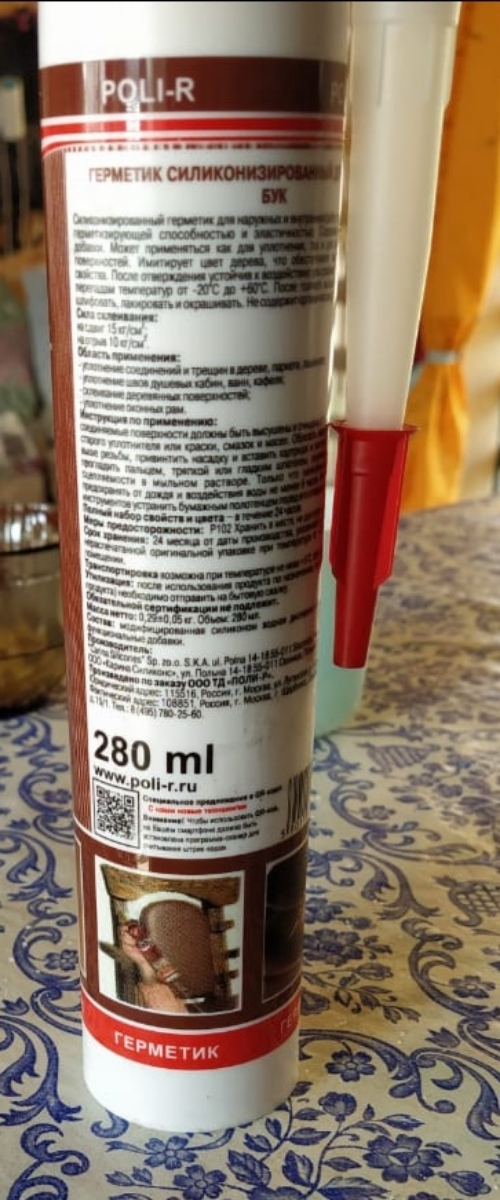 ГЕРМЕТИК СИЛИКОНИЗИРОВАННЫЙ ДЛЯ ДЕРЕВА POLI-R красное дерево 280мл