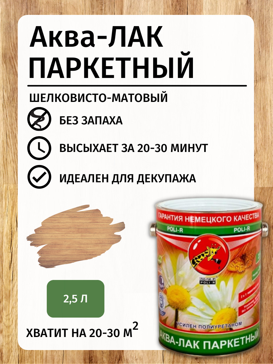 Аква-лак паркетный, Шелковисто-матовый, бесцветный, 2500мл