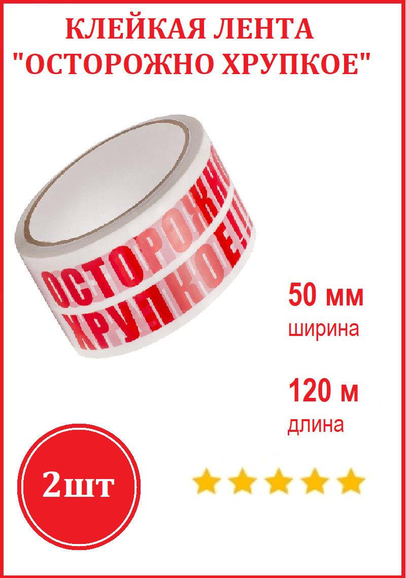 Клейкая лента,с надписью "Осторожно хрупкое" 50 мм 120 м 50 мкм, 2 шт