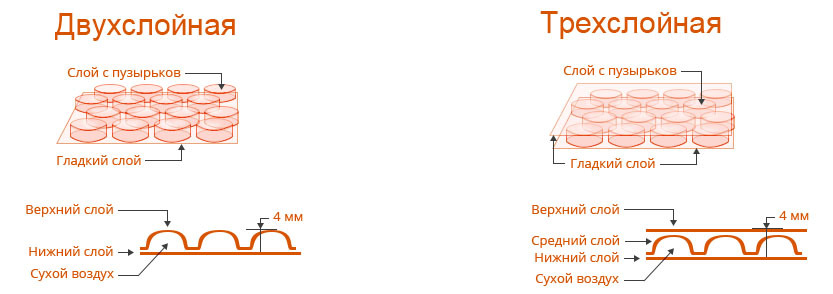 Пленка воздушно-пузырчатая пузырьковая, пупырчатая, пупырка2 слойная 0.5х5 м, плотность 60 г/м2