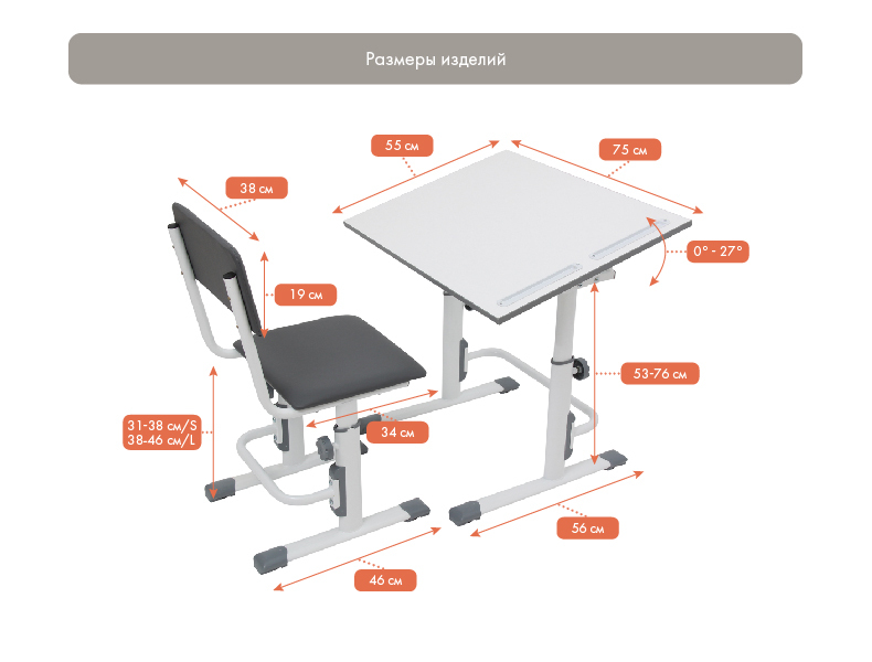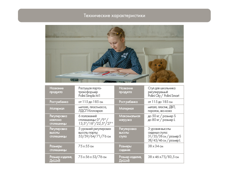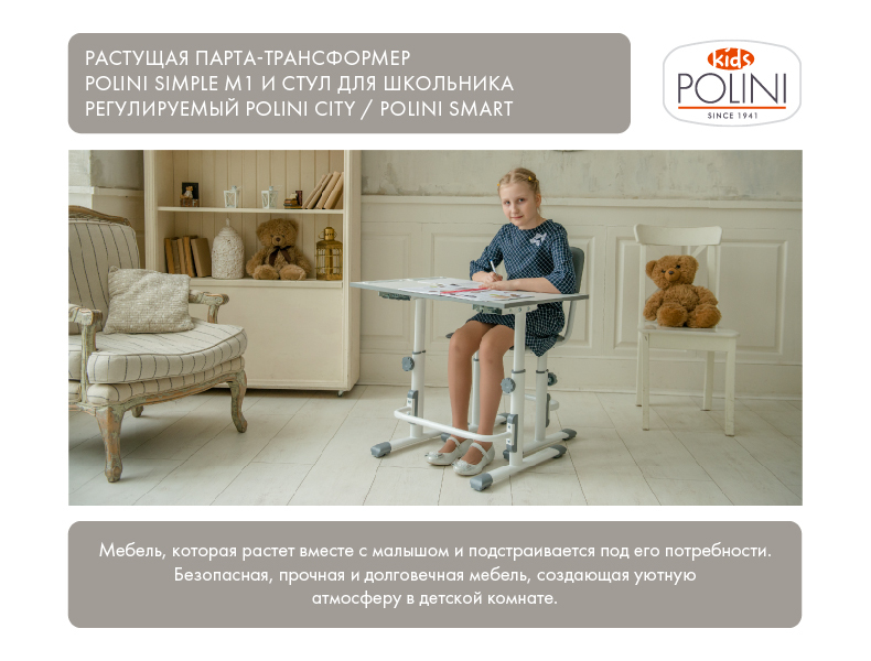 Парта Трансформер Polini Kids Simple М1, 75х55х53 см