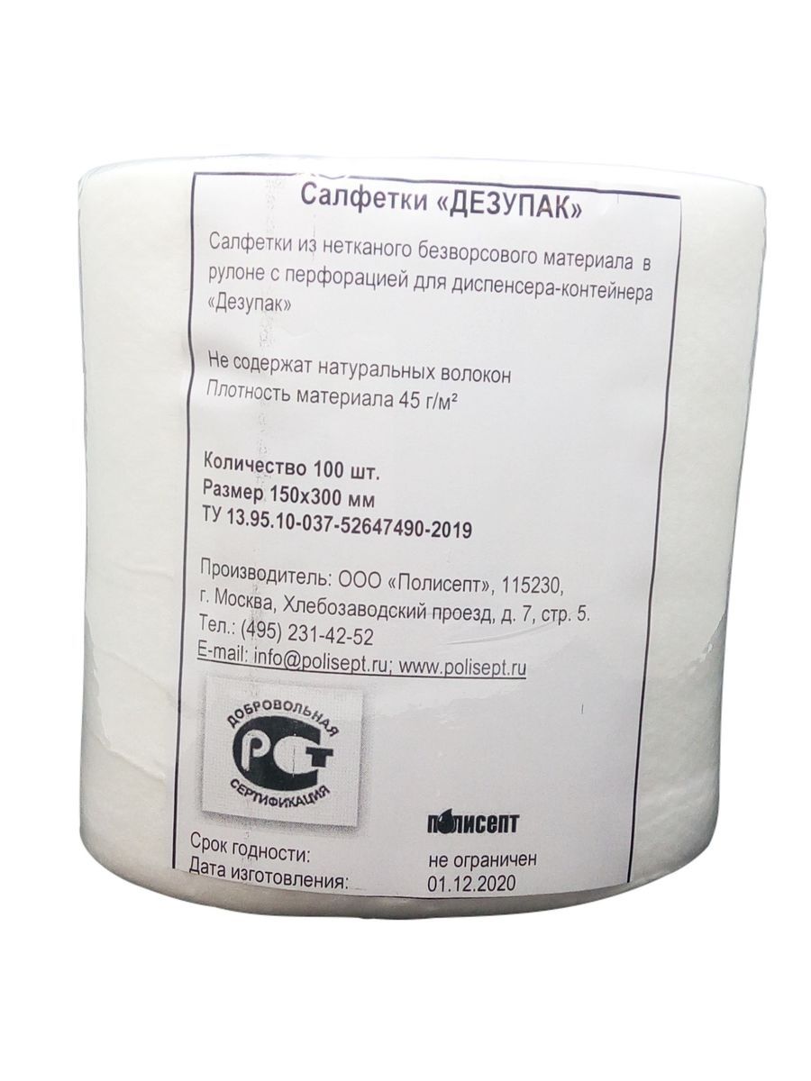 Сменный блок сухих салфеток Дезупак 100 штук (Размер 150 х 300 мм.)
