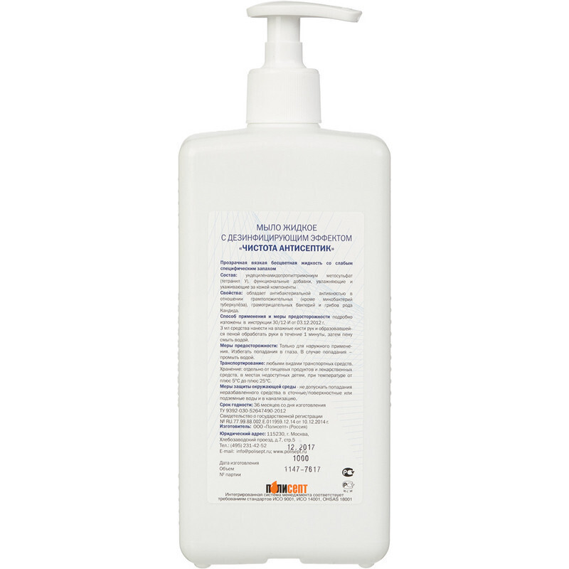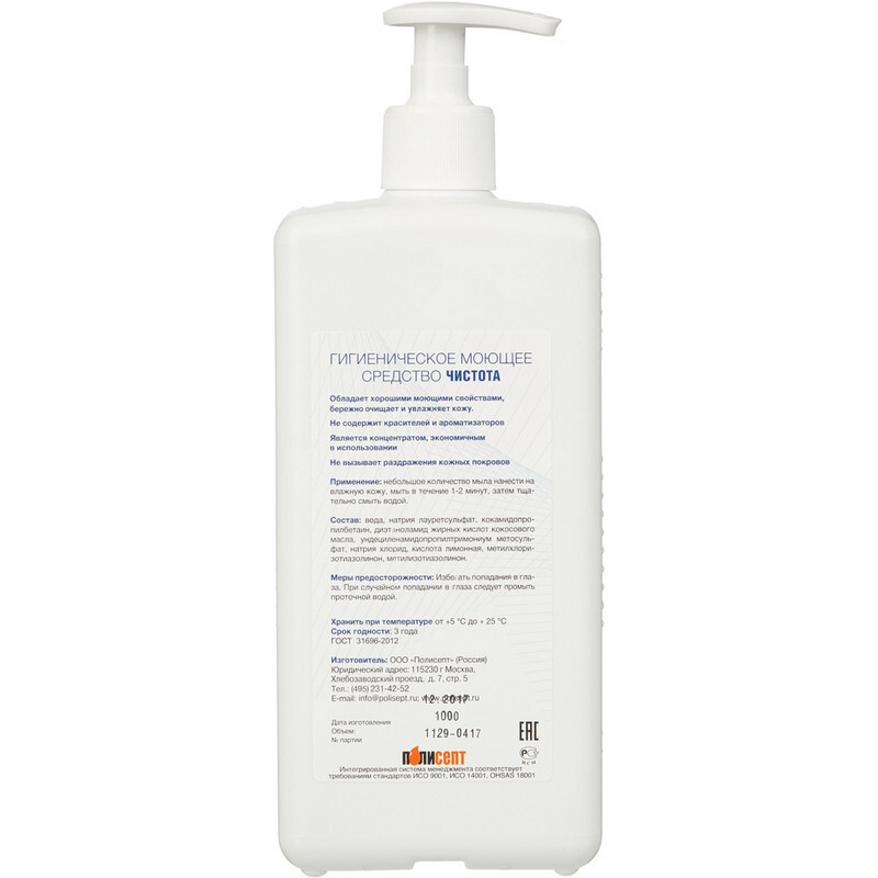 Дезинфицирующее мыло Чистота 1,0 л (с дозатором)