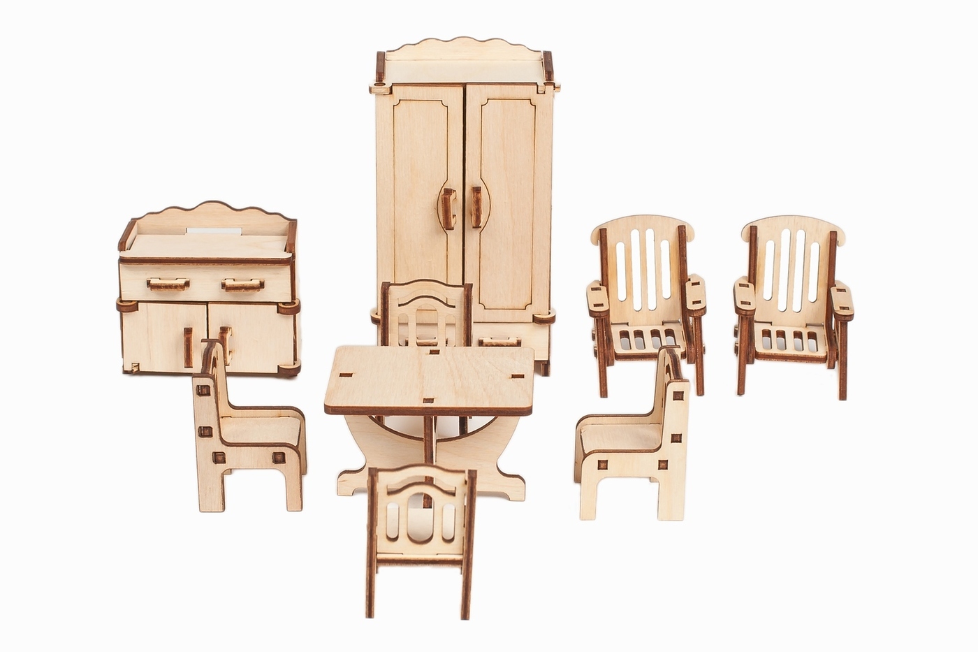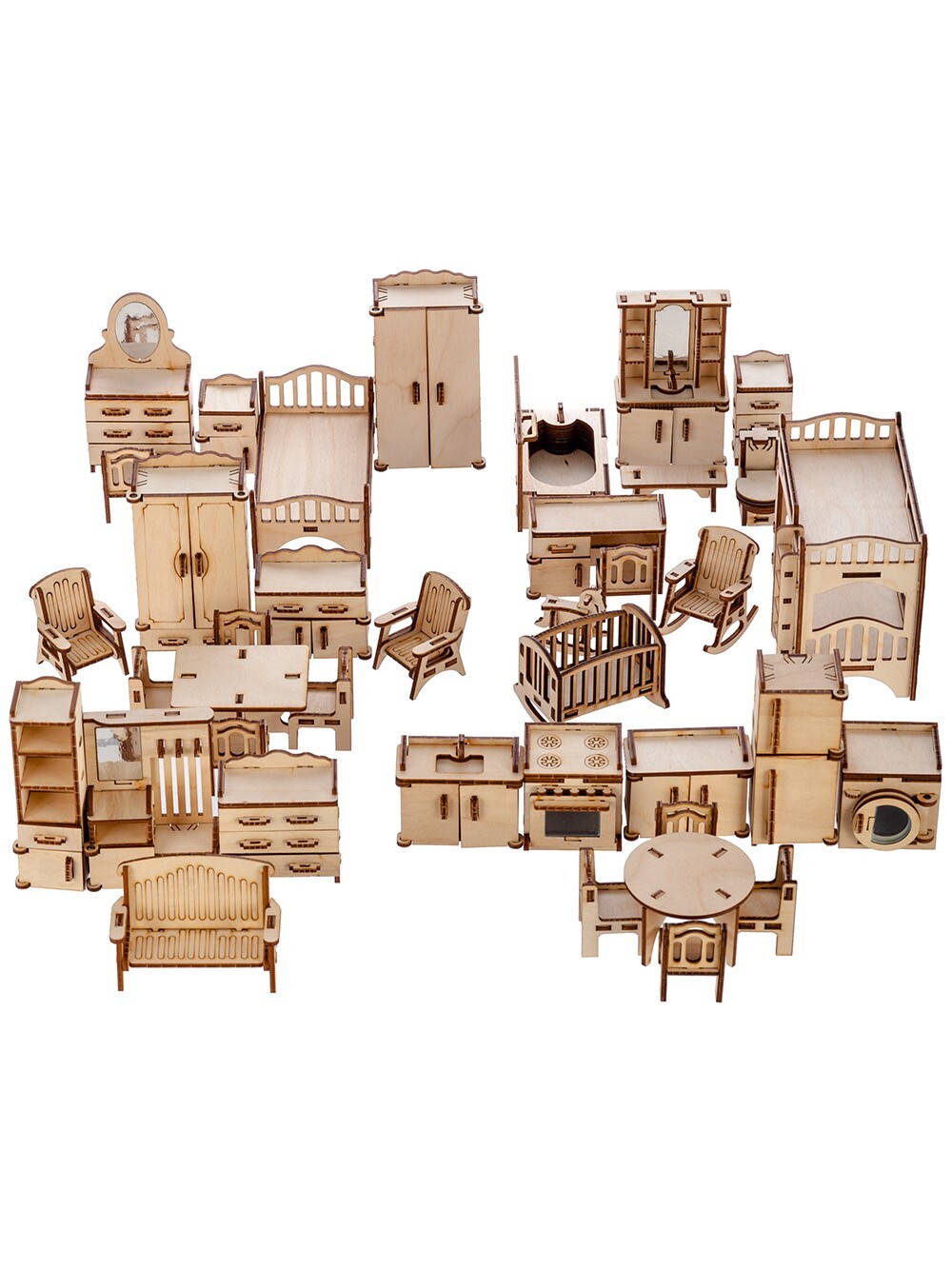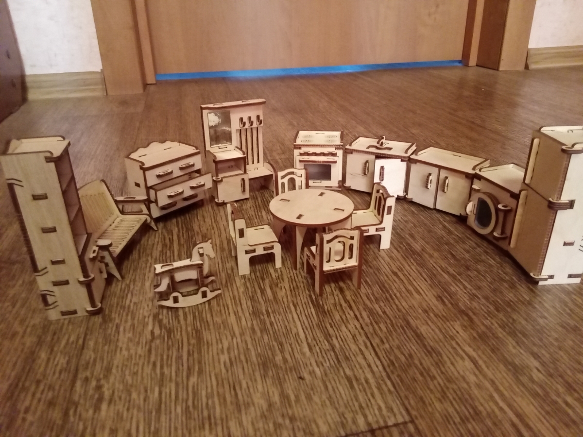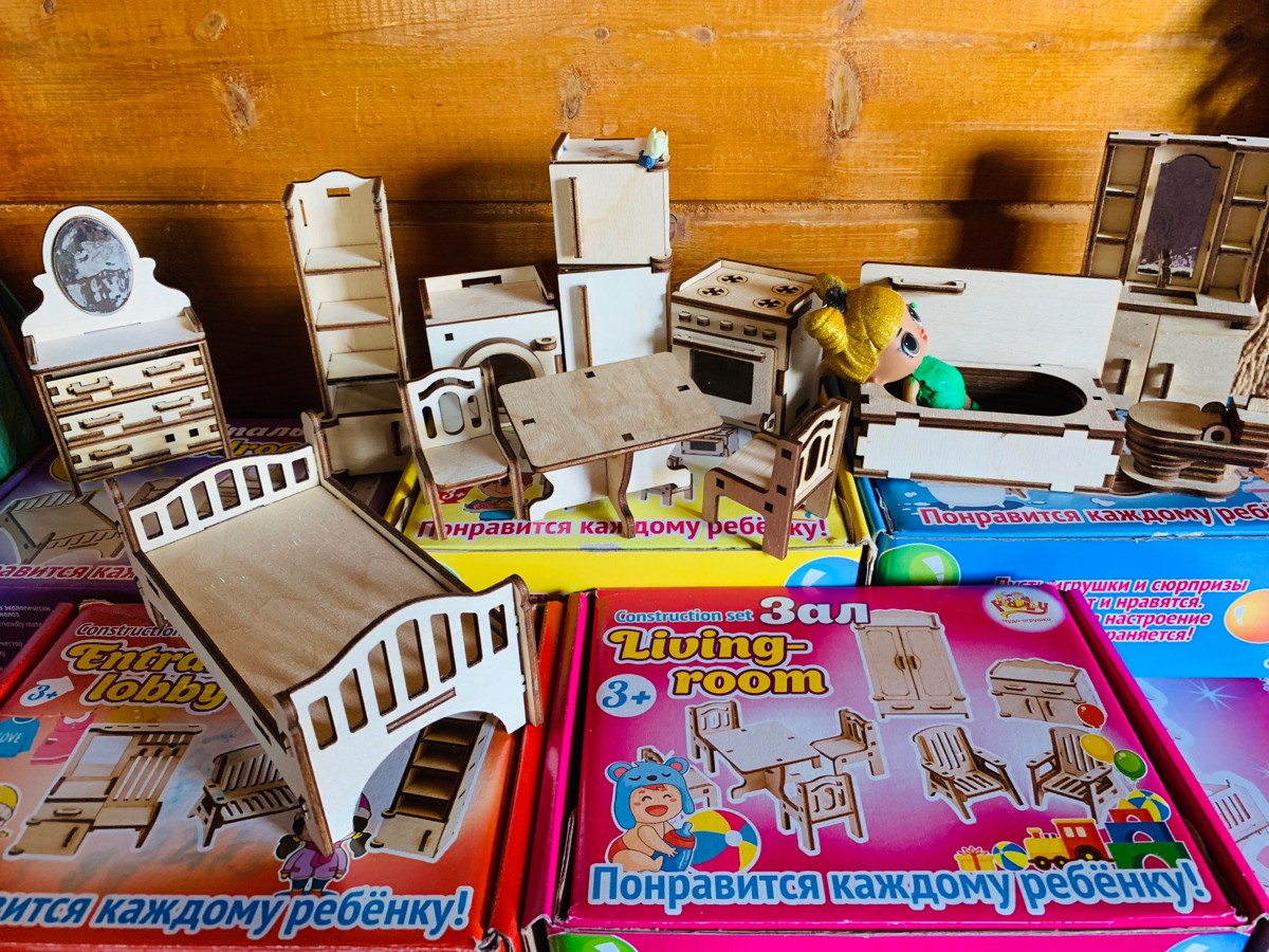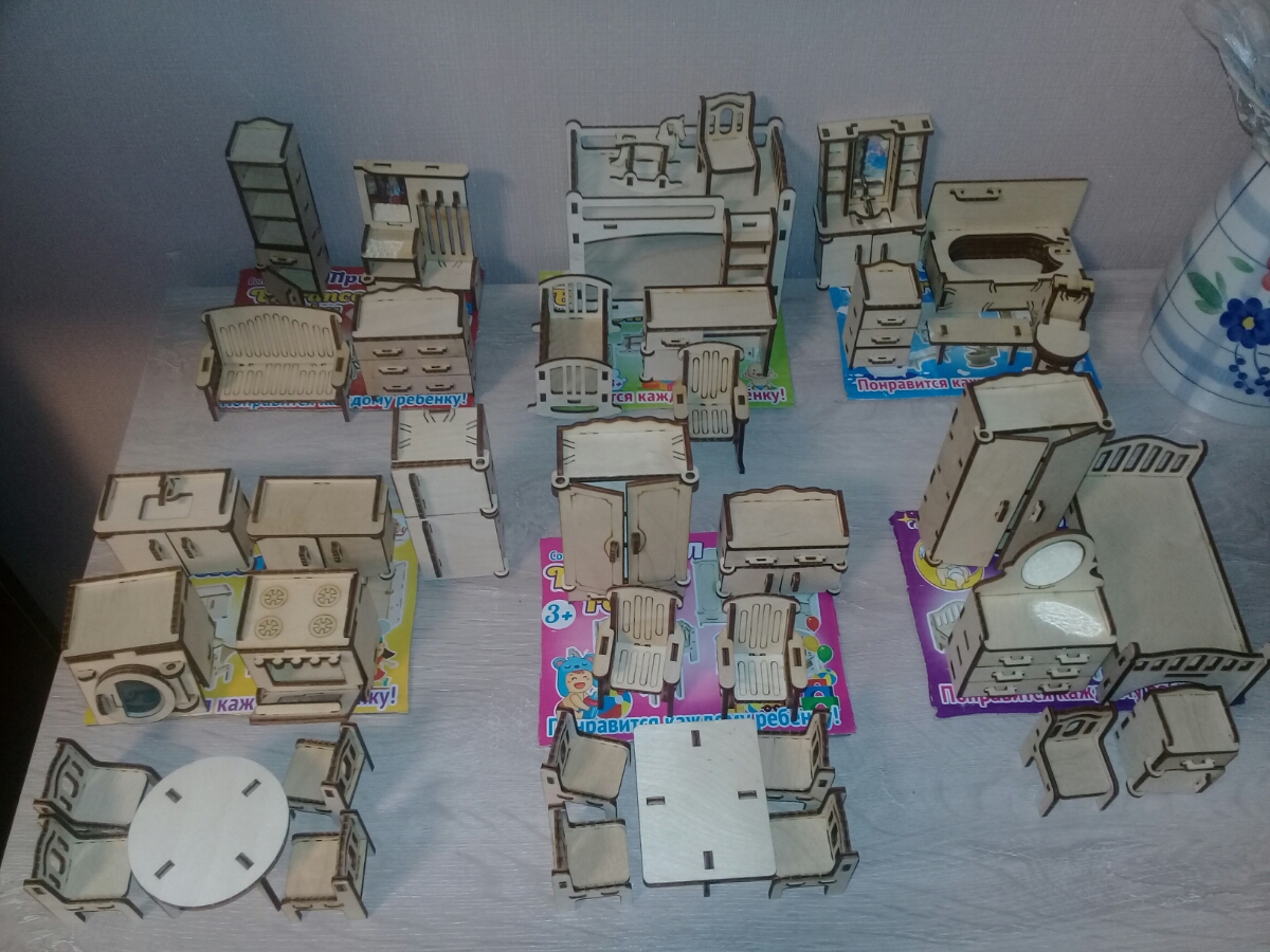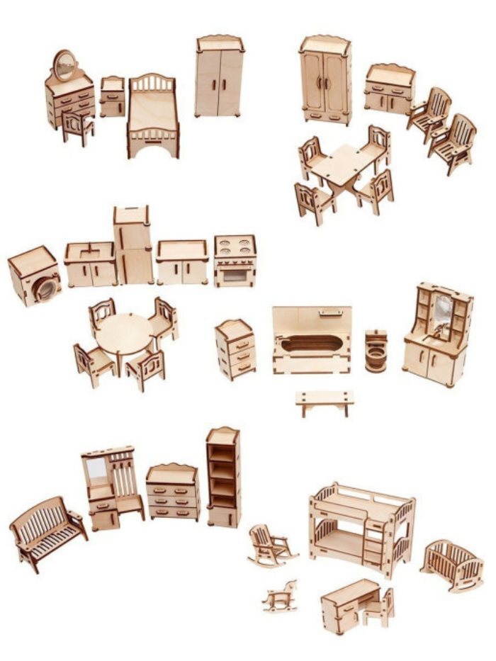Деревянная мебель для кукольного домика - 6 наборов