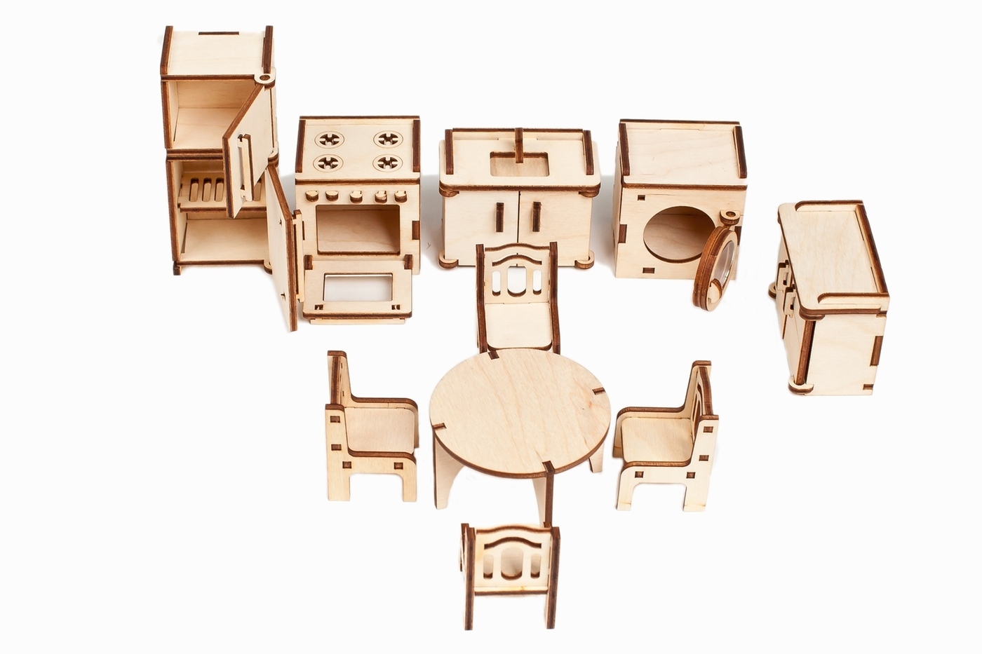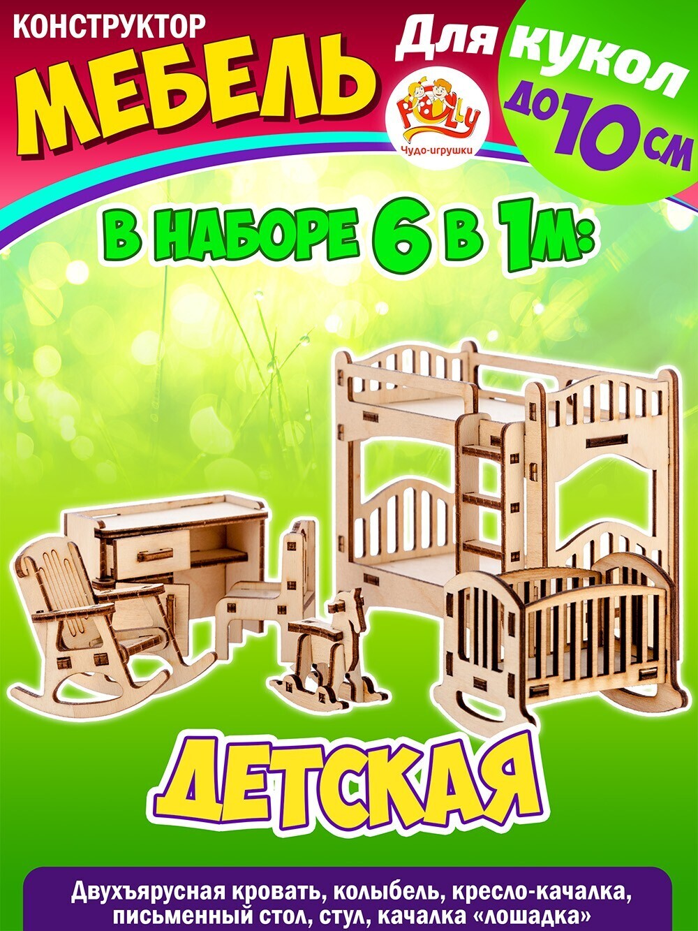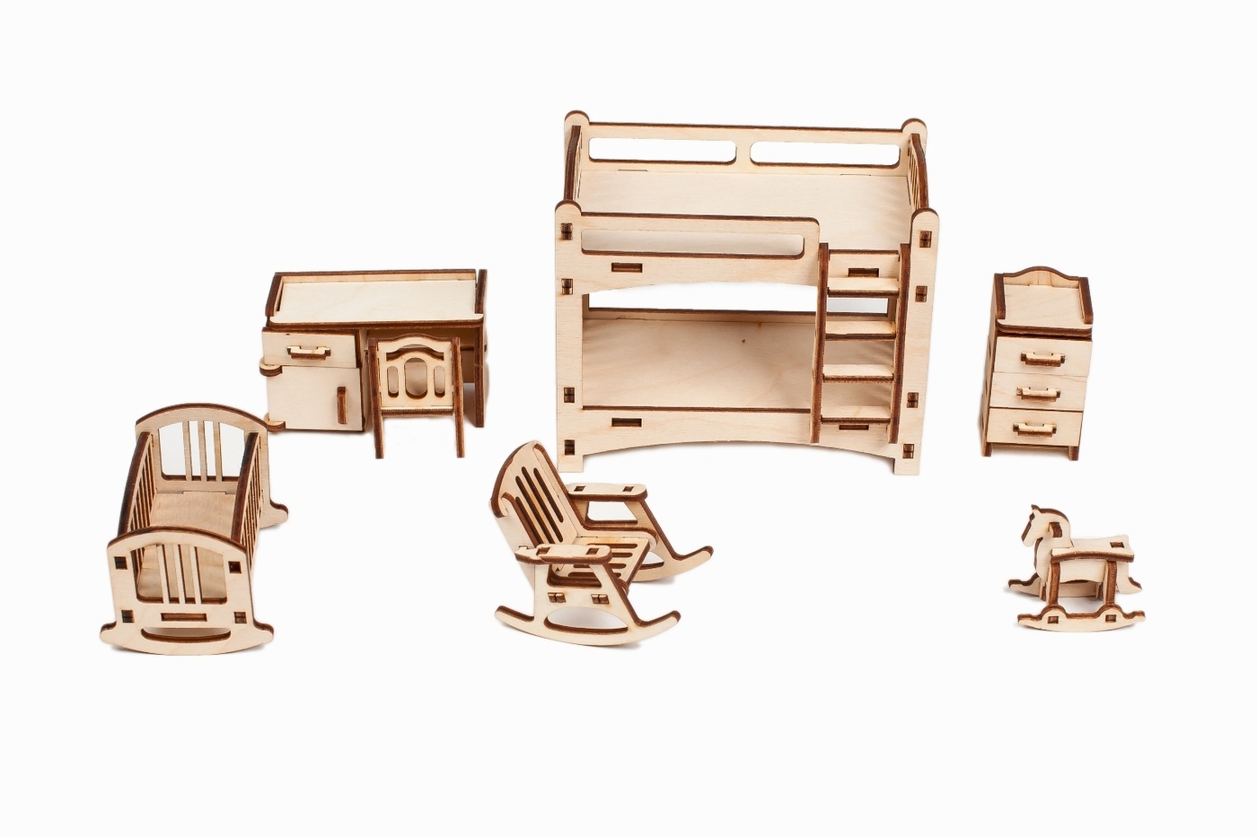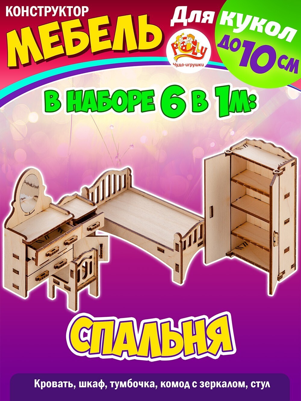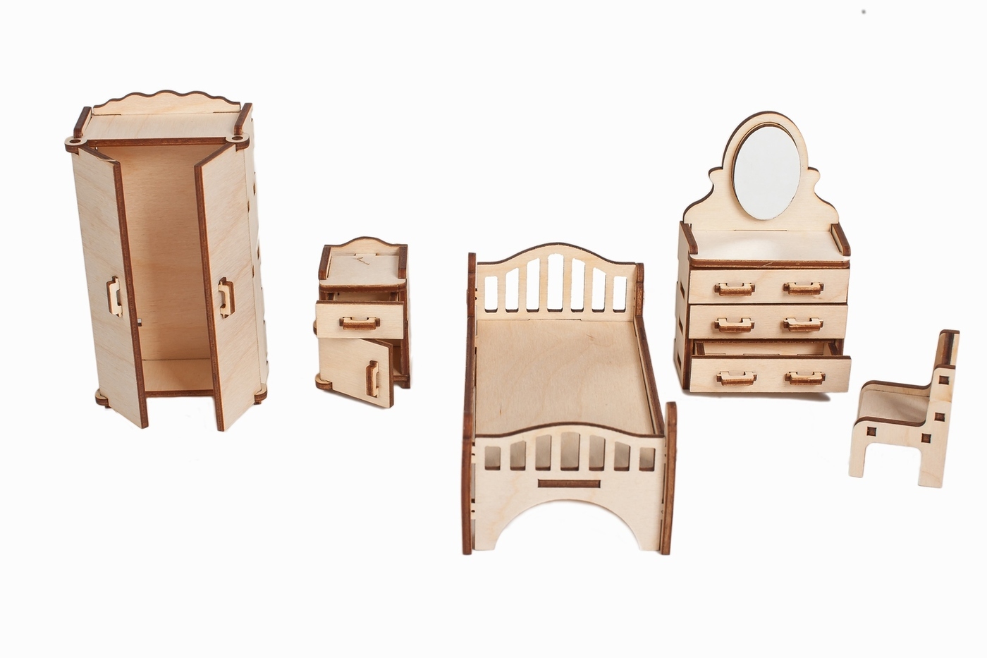 Деревянная мебель для кукольного домика - 6 наборов