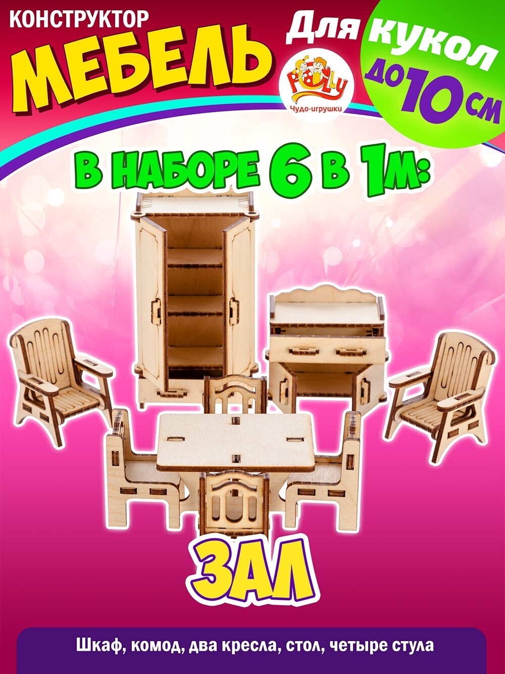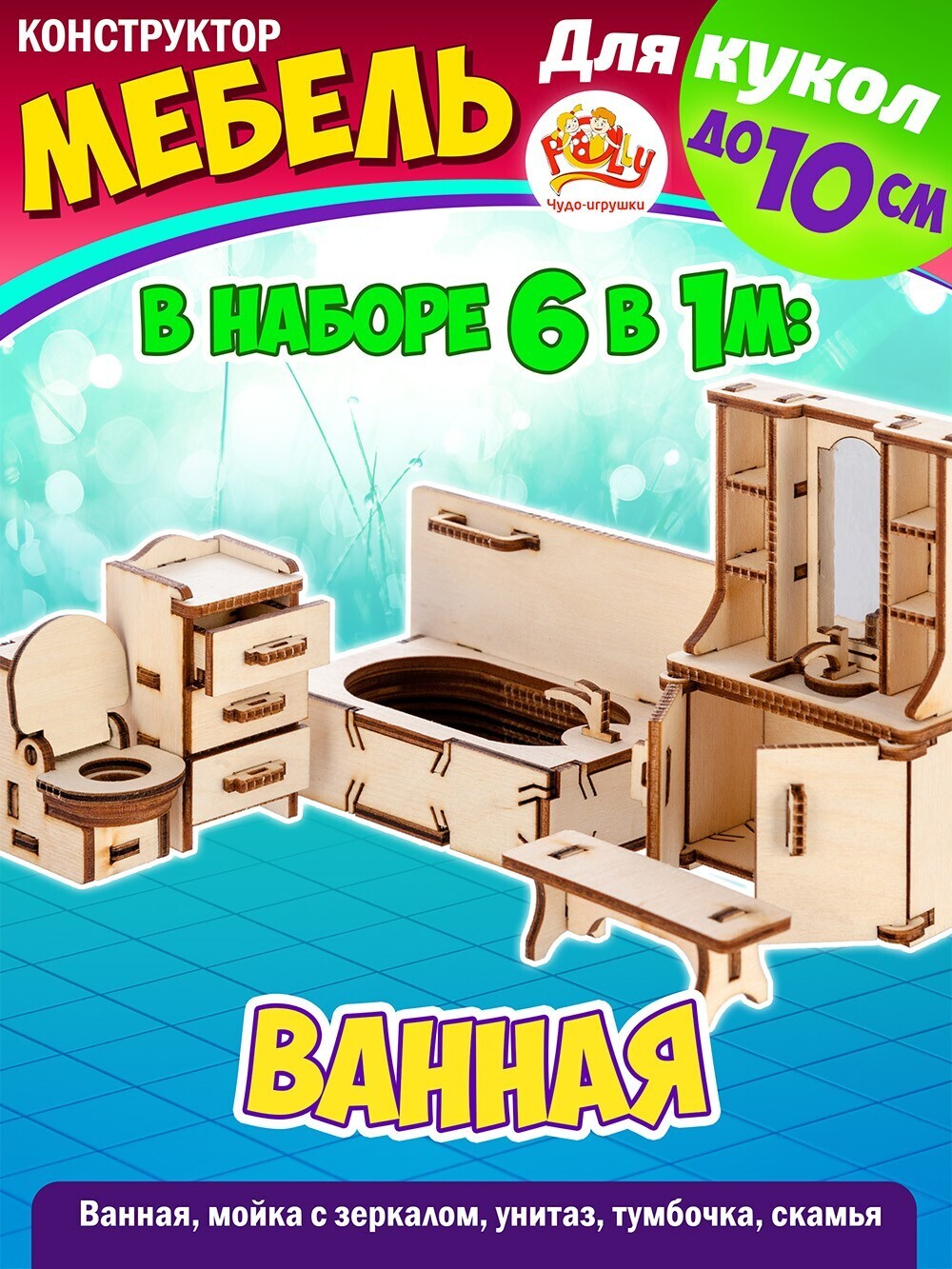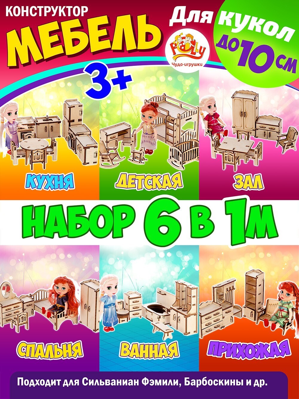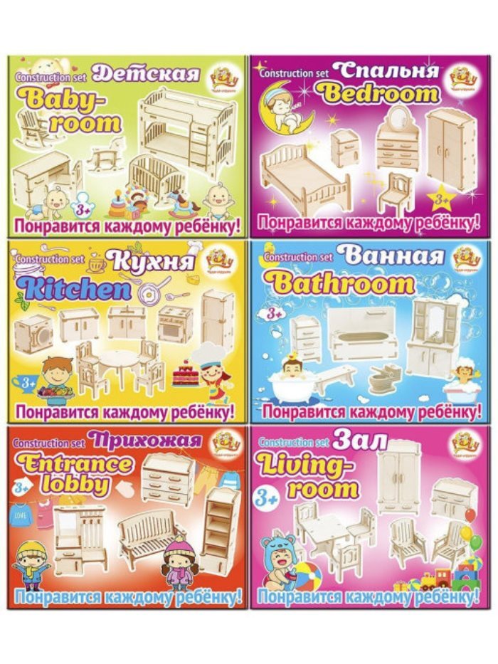 Конструктор Мебель для кукол до 15 см., 6 комнат