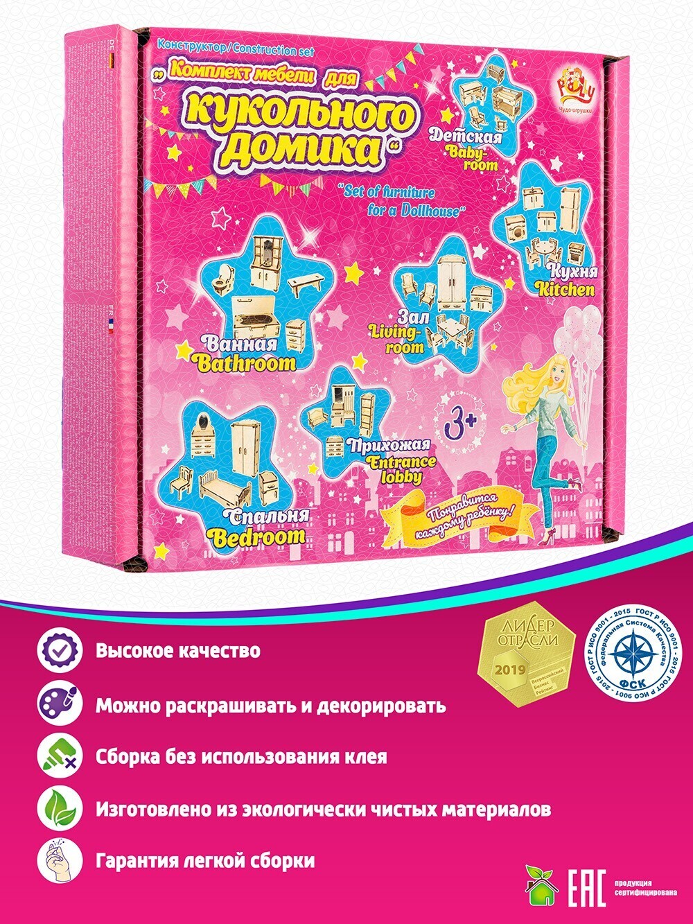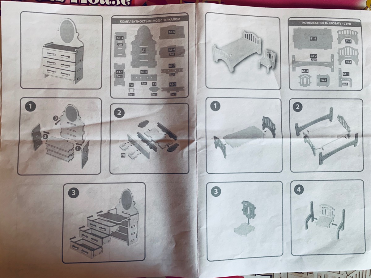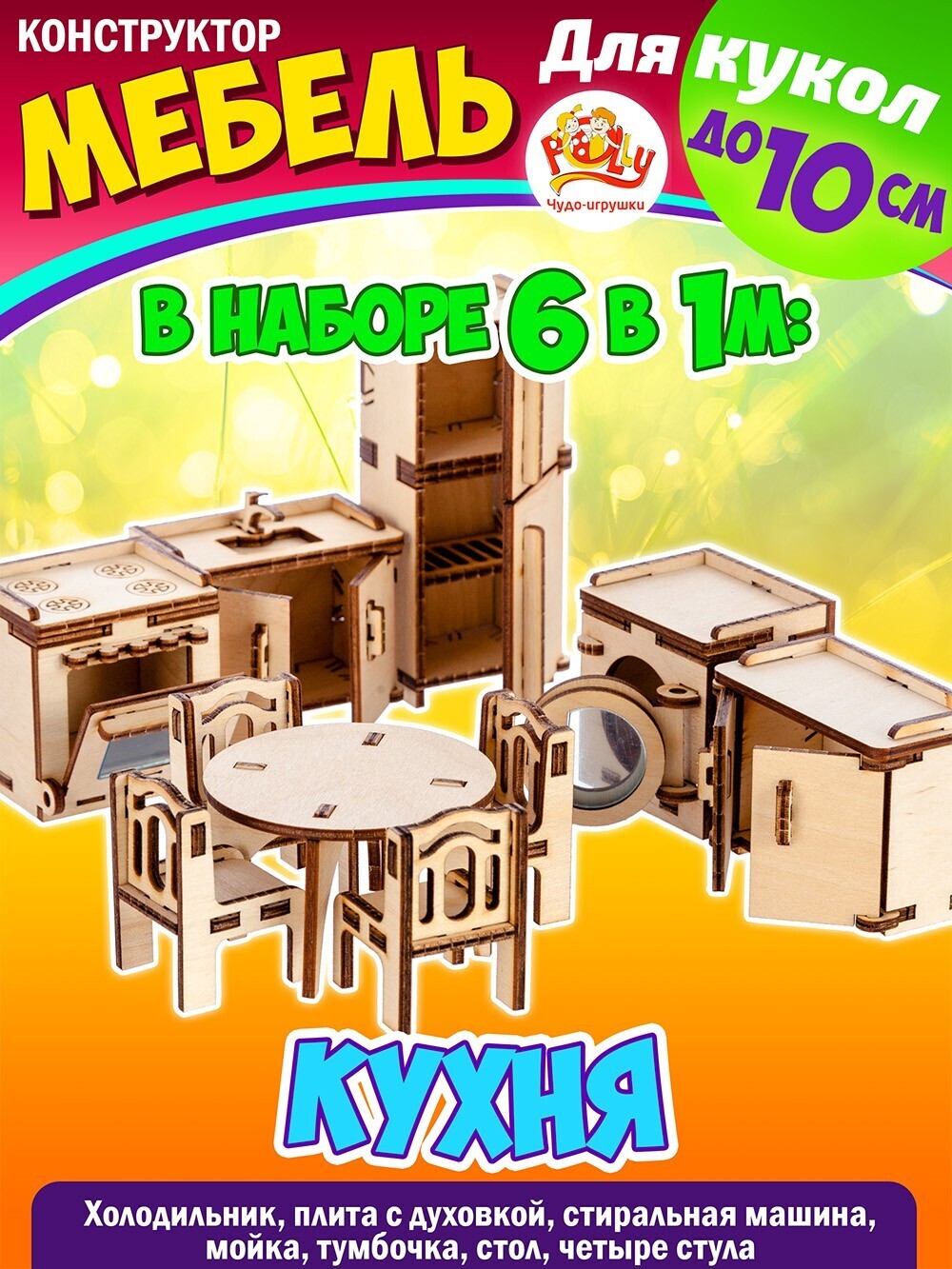 Конструктор Мебель для кукол до 15 см., 6 комнат