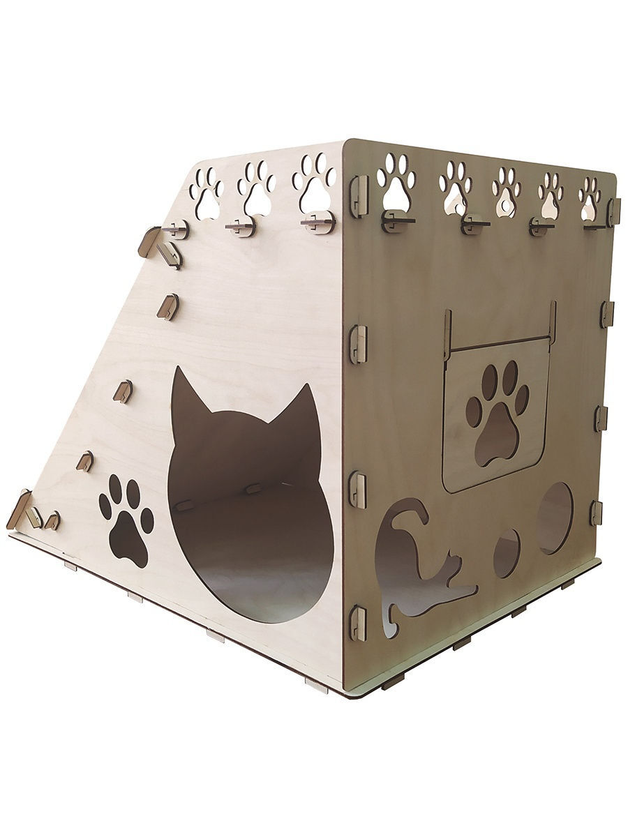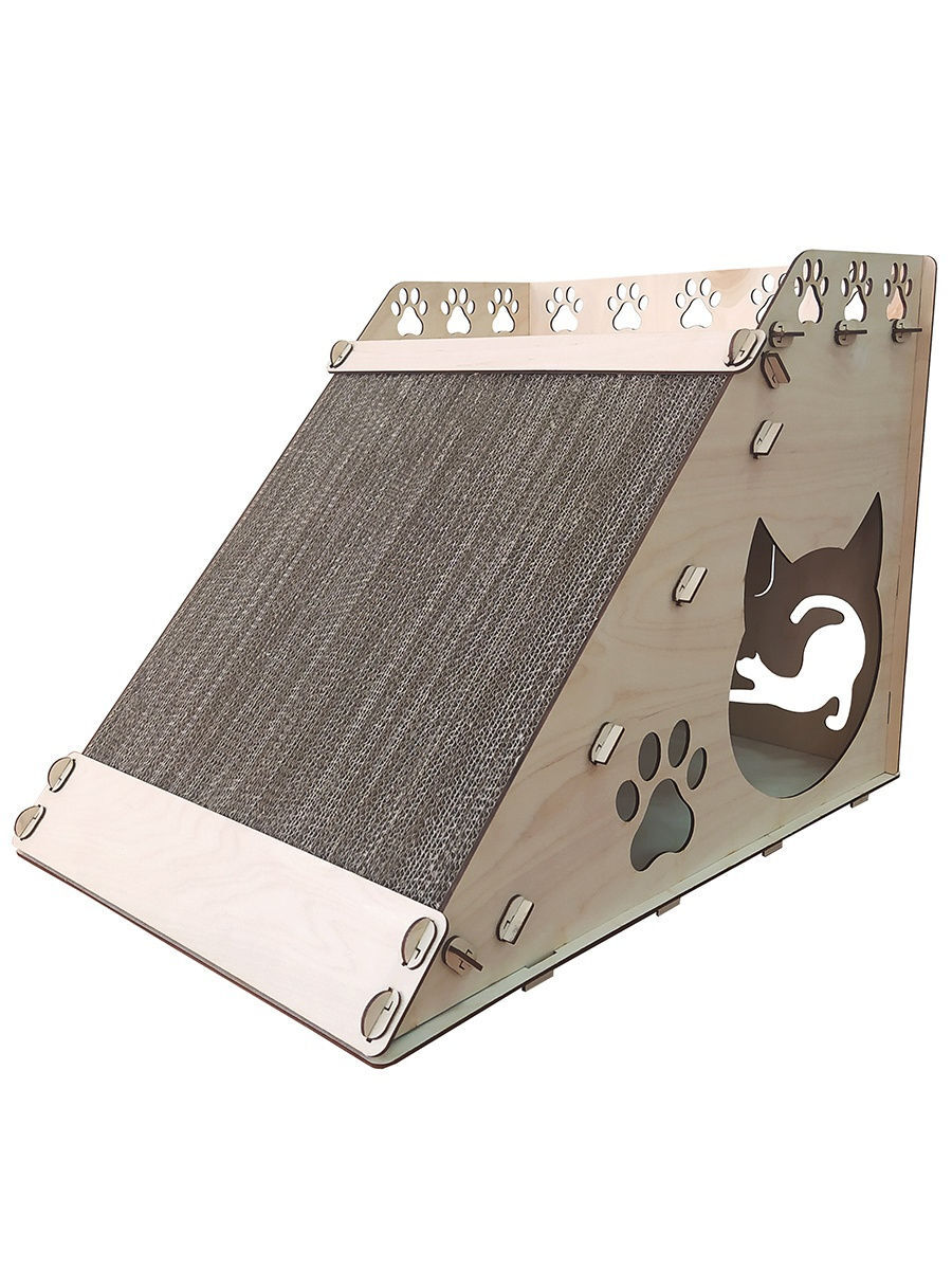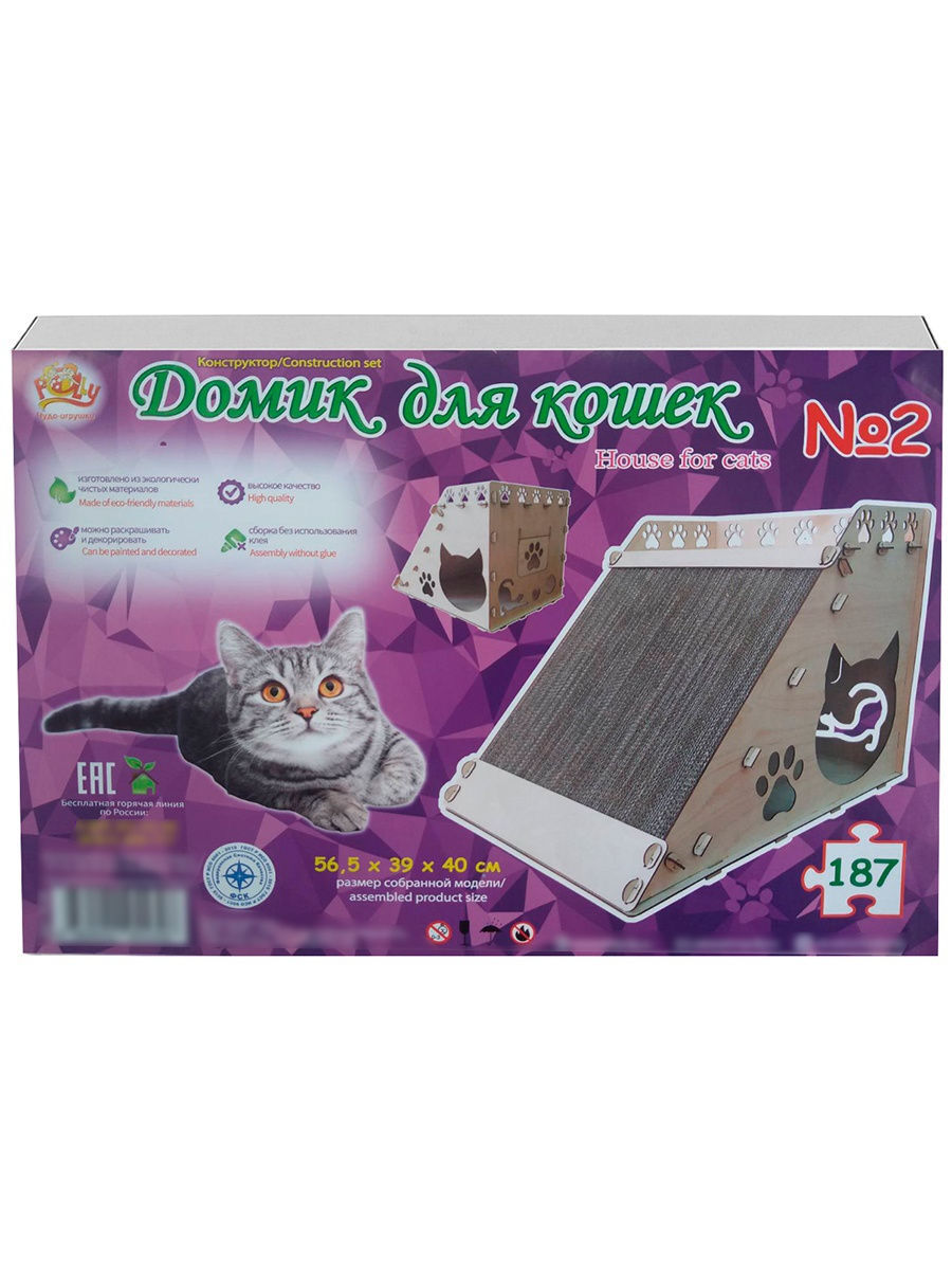 Деревянная сборная модель конструктор Polly "Домик для кошек №2" с когтеточкой 187 деталей 56,5х39х40 см
