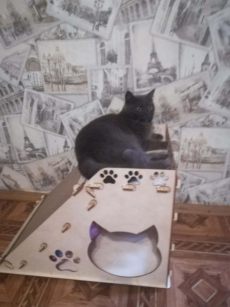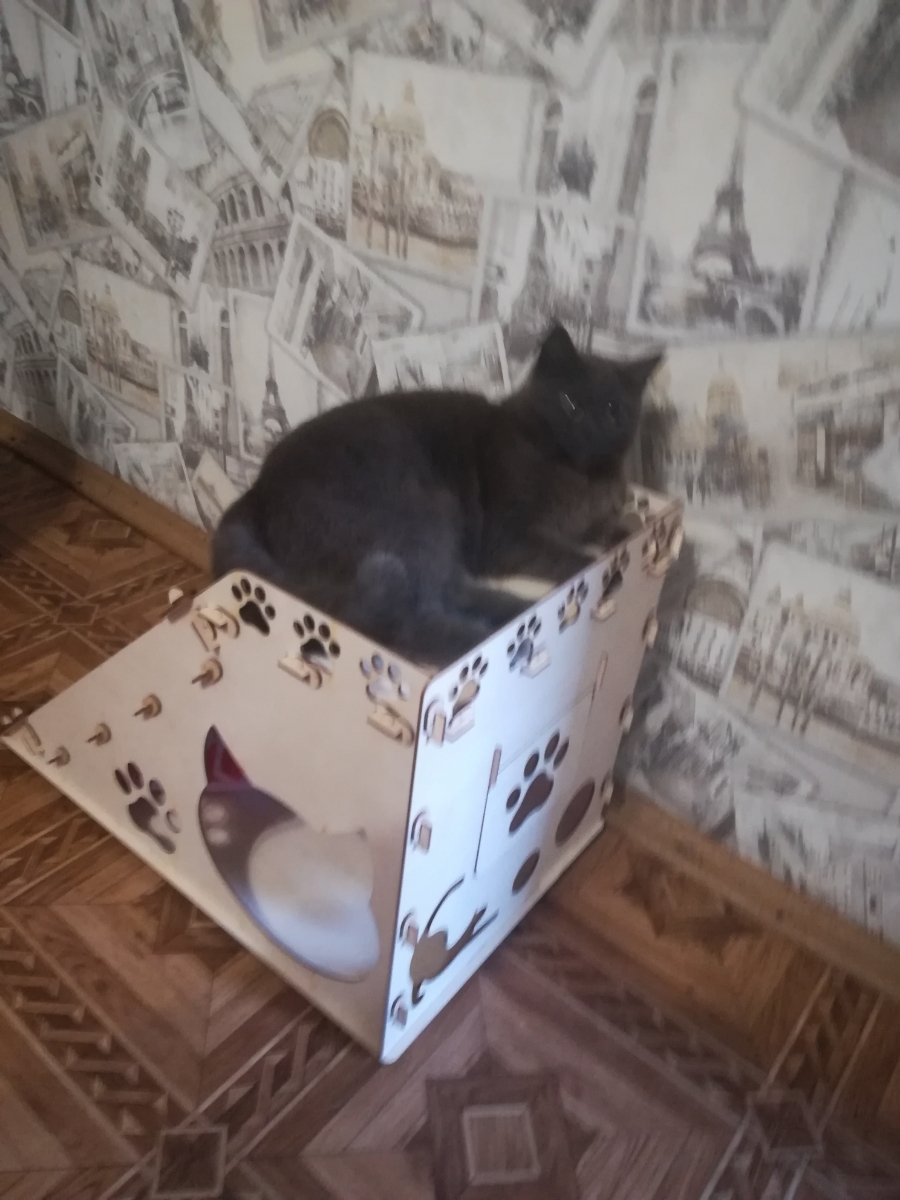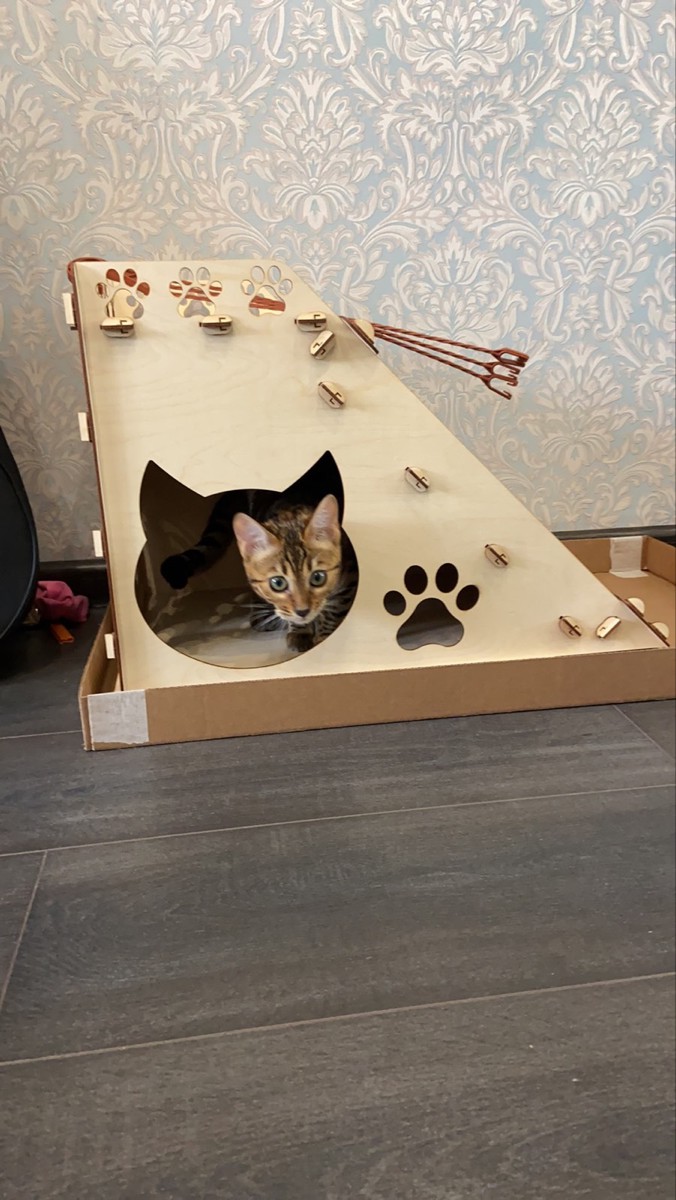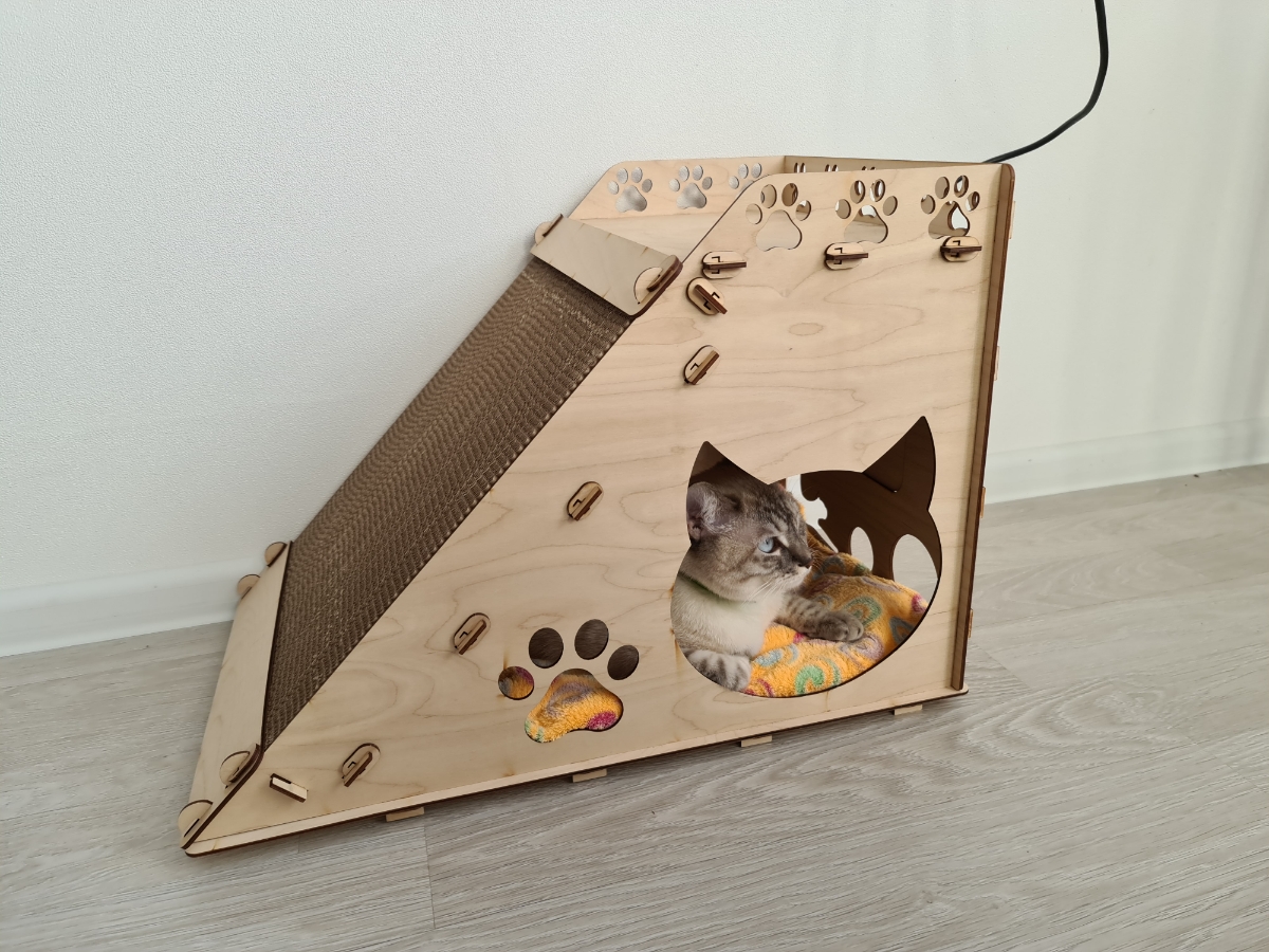 Деревянная сборная модель конструктор Polly "Домик для кошек №2" с когтеточкой 187 деталей 56,5х39х40 см