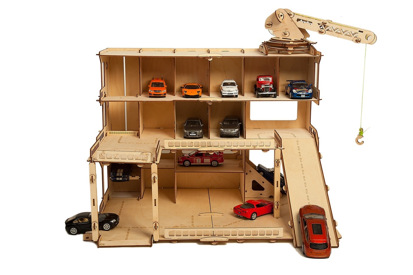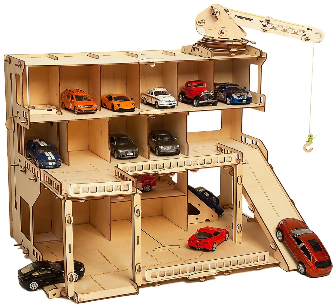Деревянная парковка для машинок "Мегапарк" - деревянный конструктор