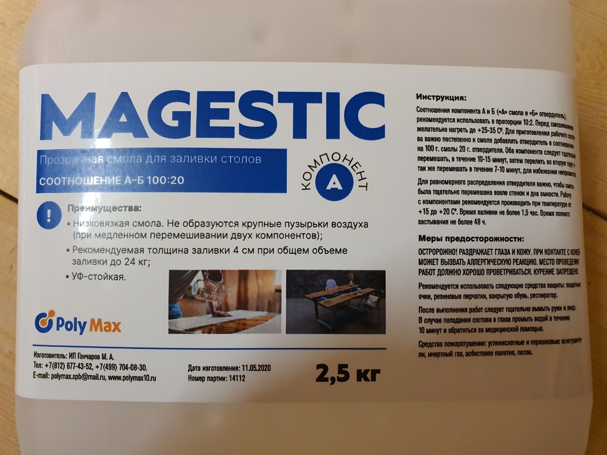 Прозрачная эпоксидная смола для заливки столов Magestic 7,5 кг