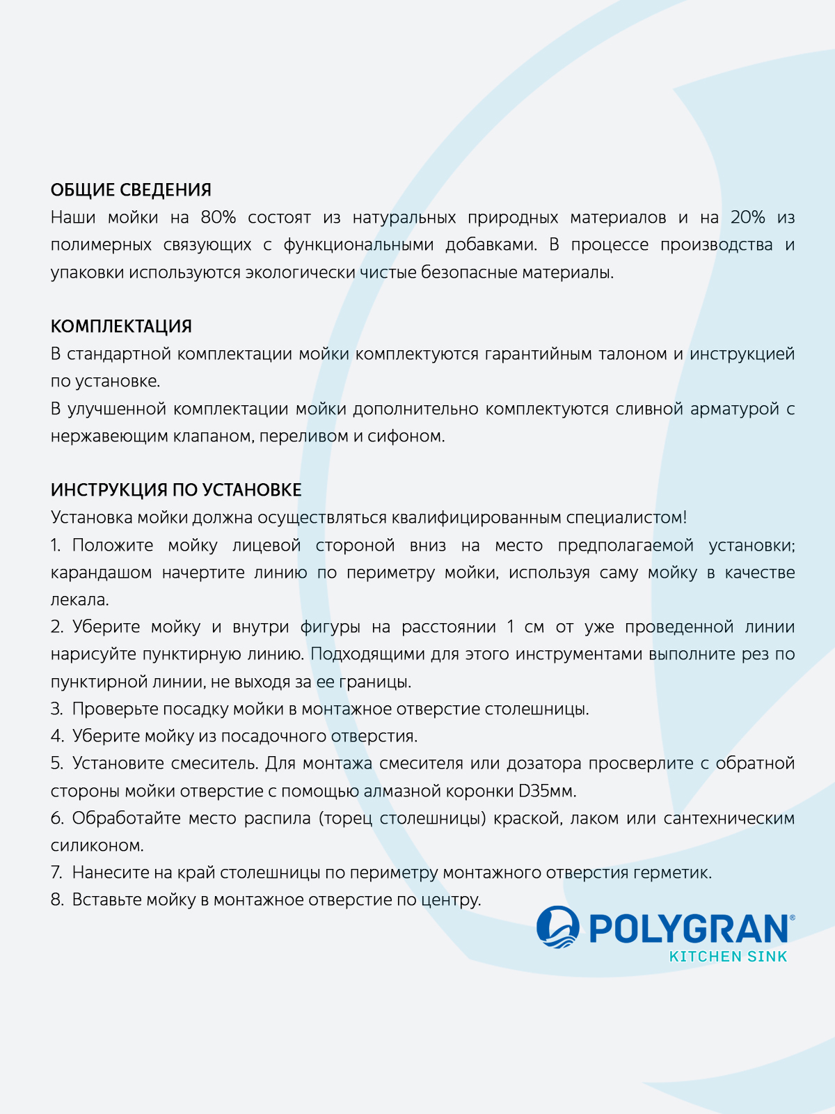Мойка кухонная POLYGRAN Gals-620 Белый хлопок 36