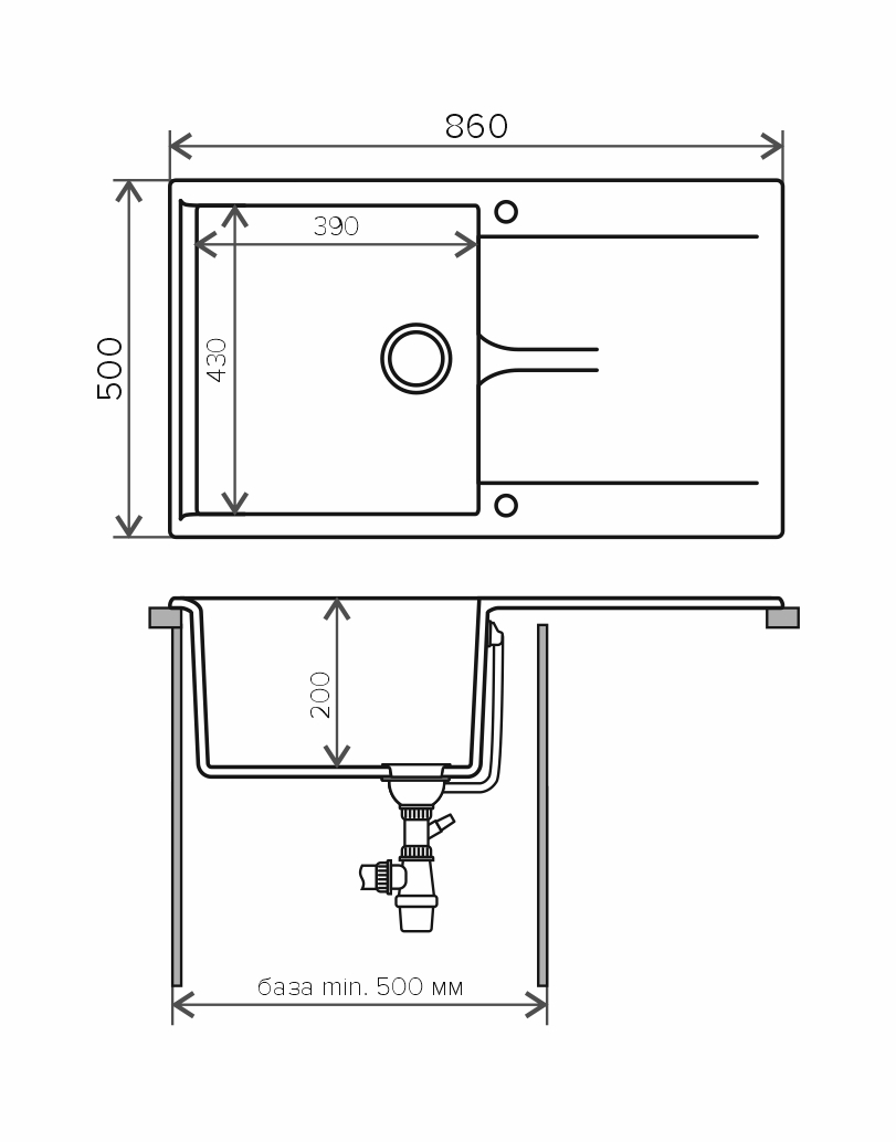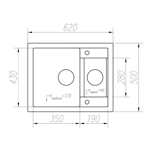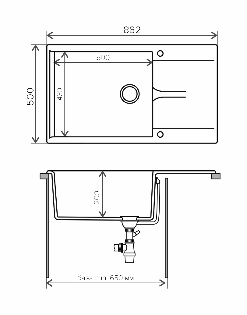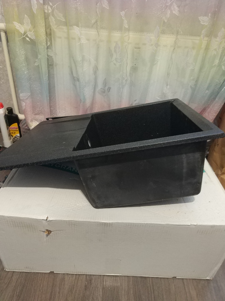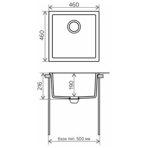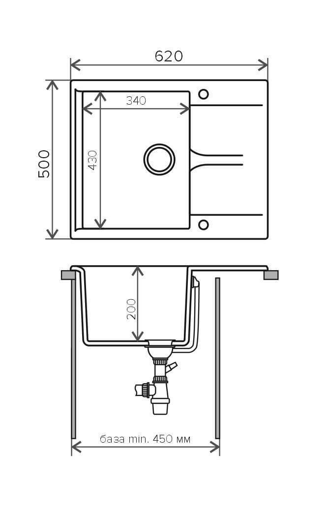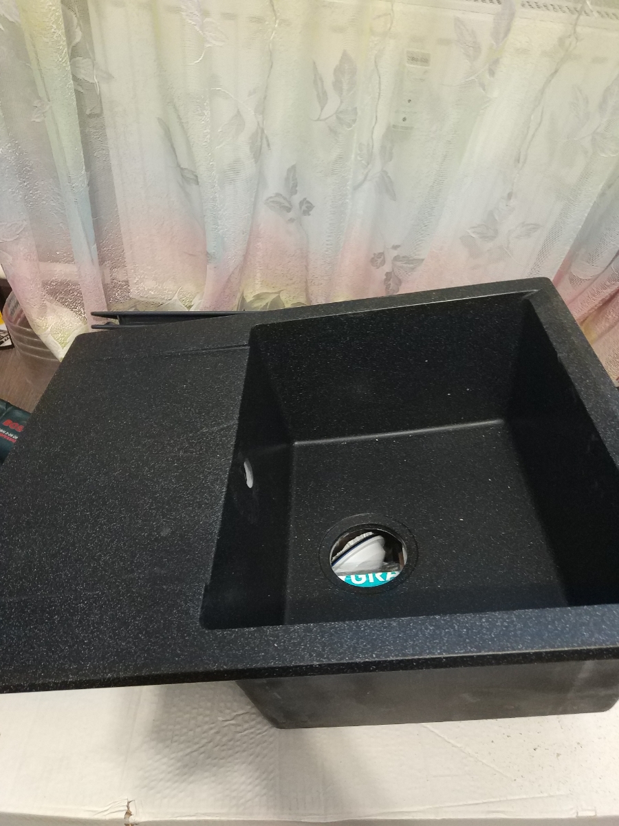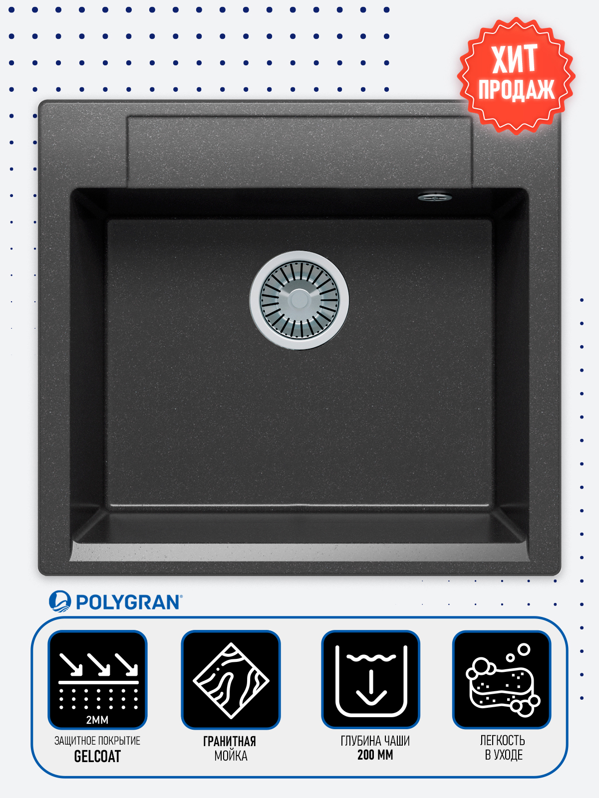 Мойка POLYGRAN, мрамор, GALS-620, (500*620*200 мм), черный, сифон и сливная арматура
