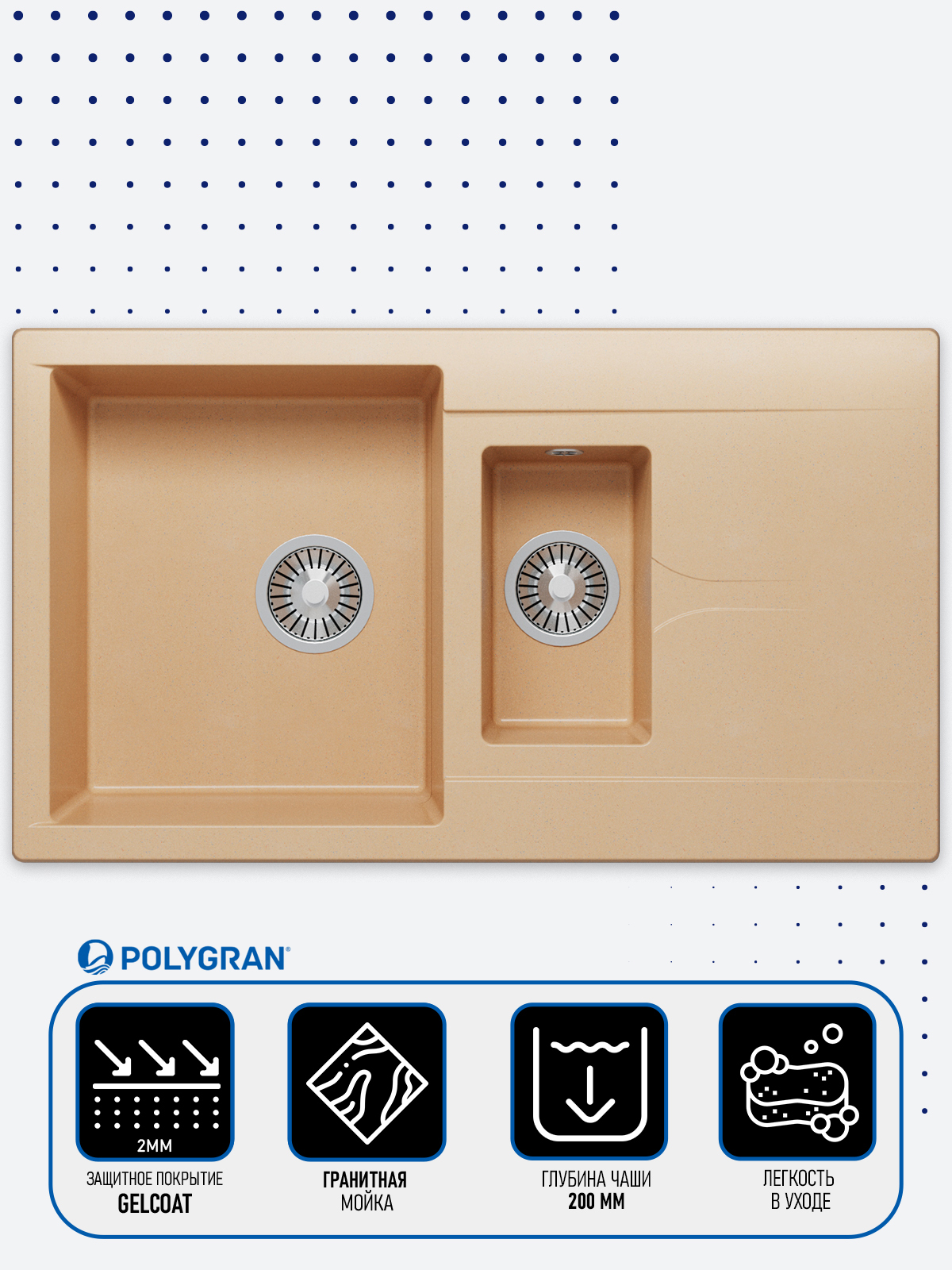 Мойка кухонная POLYGRAN Atol- 760 Песочный 302