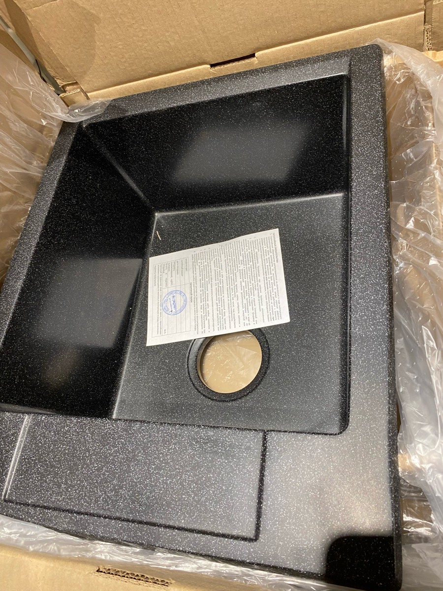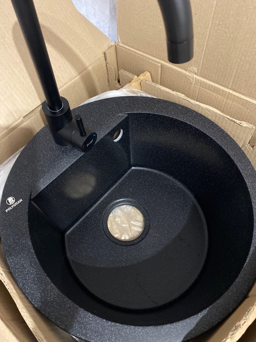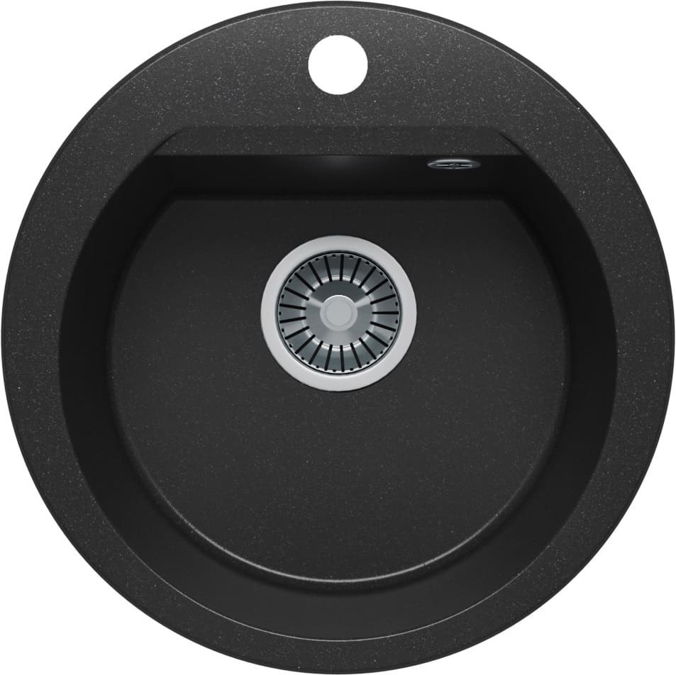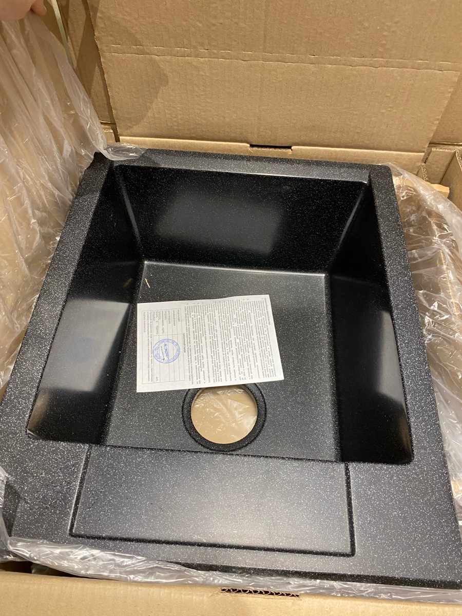 Мойка POLYGRAN, мрамор, ATOL-460, (460x200 мм), черный, сифон и сливная арматура